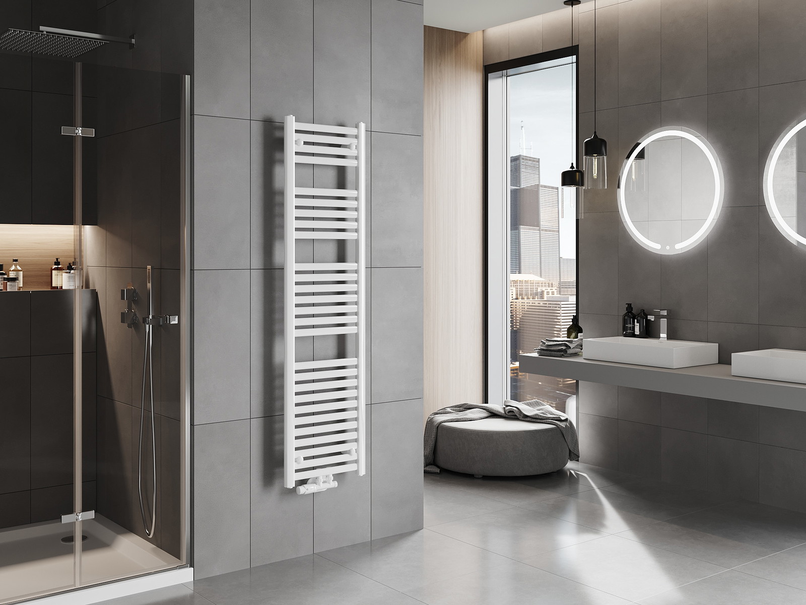Mexen Hades on tyylikäs kylpyhuoneen lämmitin, jonka mitat ovat 1500 x 400 mm, ja se yhdistää erinomaisesti toiminnallisuuden ja estetiikan. Se on valmistettu teräksestä ja päällystetty korroosiota kestävällä maalipinnoitteella, mikä varmistaa kestävyyden ja pitkäikäisyyden. 583 W tehonsa ansiosta se lämmittää tehokkaasti kylpyhuoneesi, ja mahdollisuus asentaa lämmitin lisää käyttömahdollisuuksia. Sille on ominaista maksimikäyttöpaine 0,6 MPa, ja se on tehtaalta varustettu täydellisellä asennussarjalla, joka sisältää ripustimet ja ilmanpoistimen. Valkoinen RAL 9016 sävy sopii jokaiseen sisustukseen.