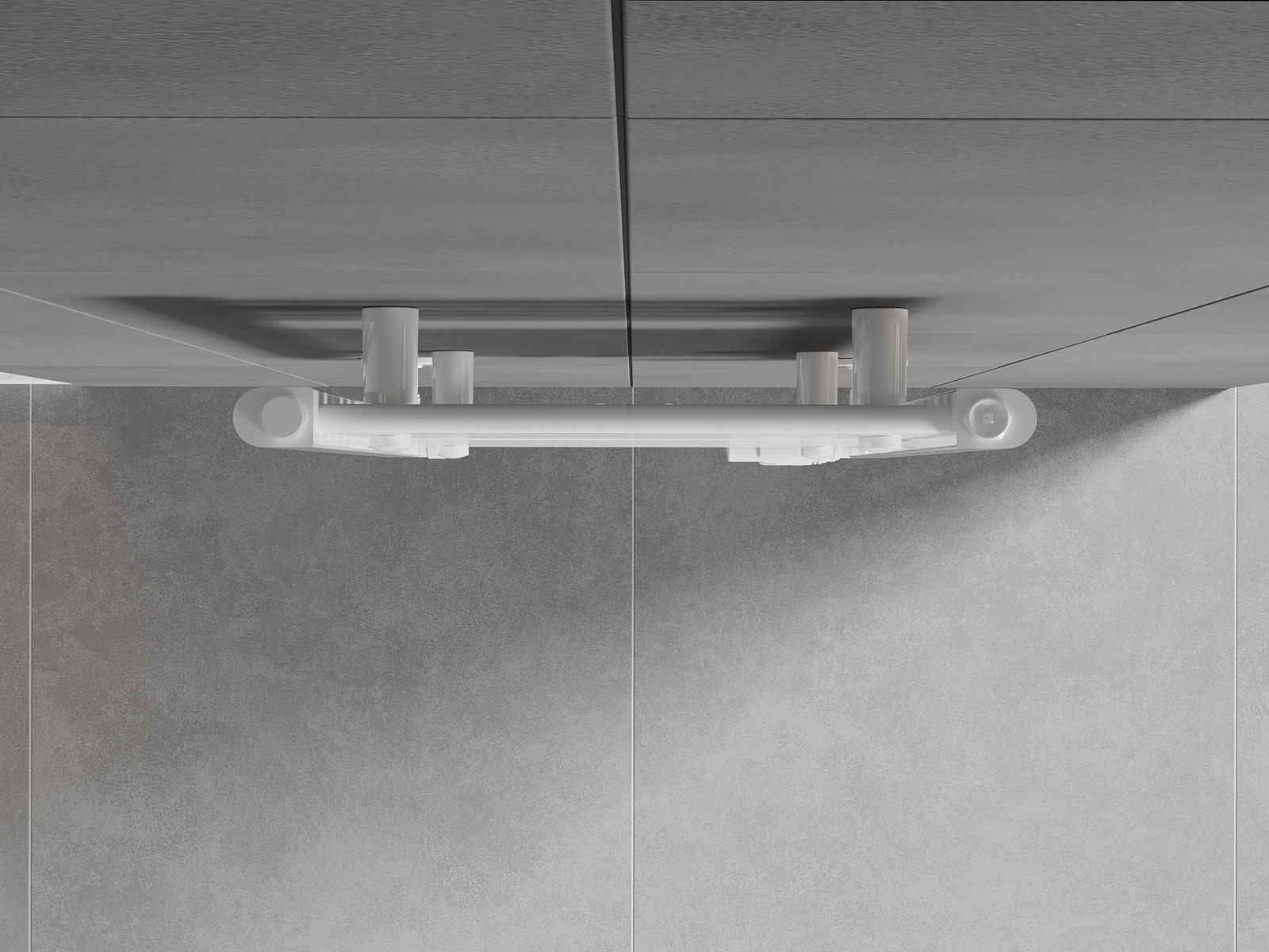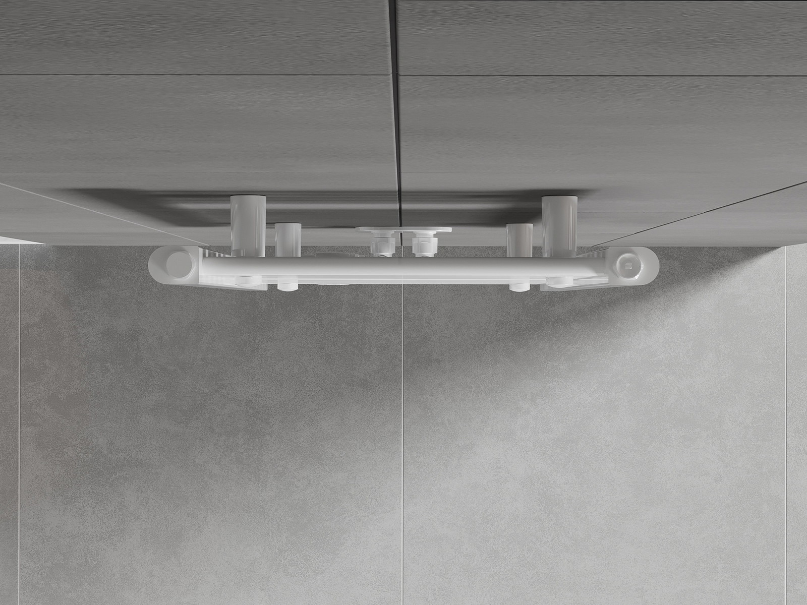 Mukana: ripustimet, asennussarja, peitetulpat sekä ilmanpoistin
