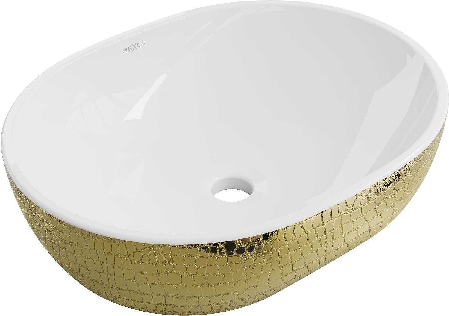 Mexen Viki työtason pesuallas 48 x 35 cm, valkoinen/kultainen suomu kuvio - 21054808