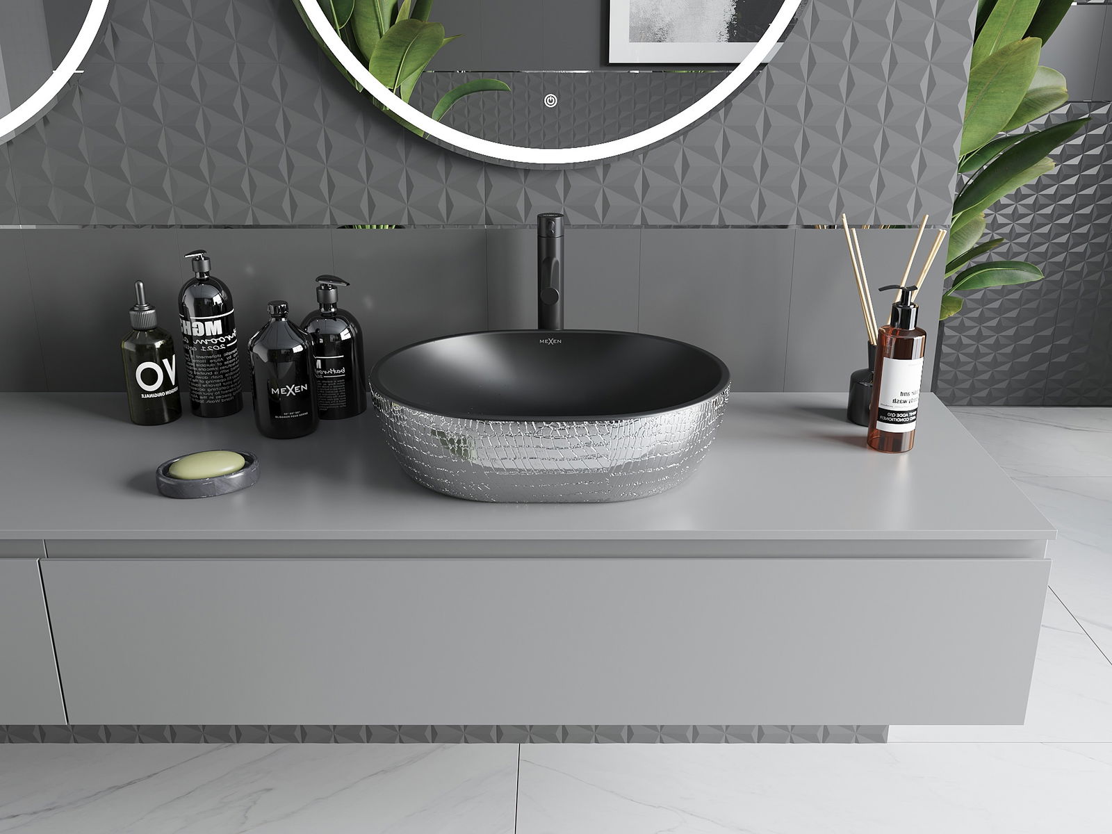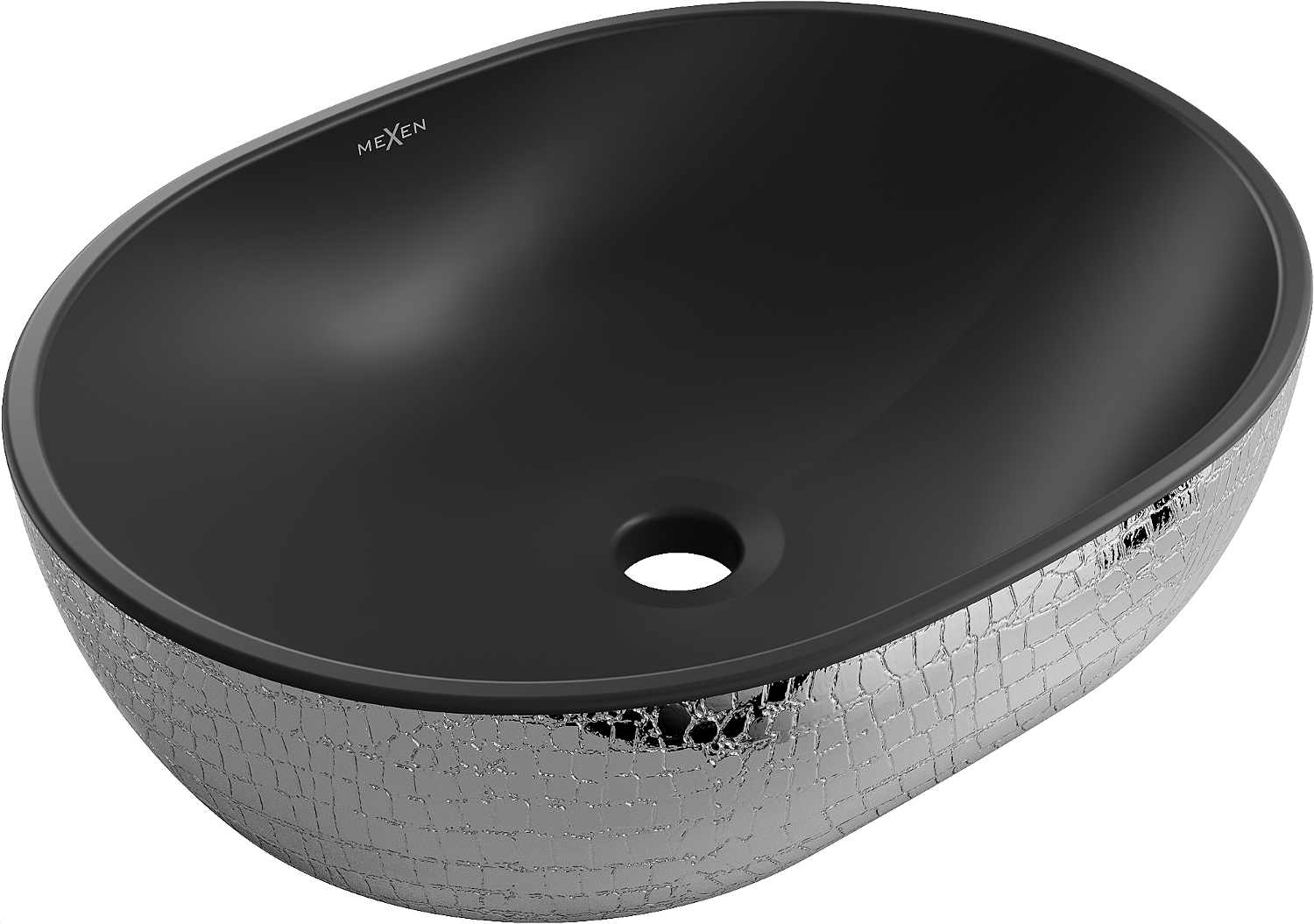 Mexen Viki pöytätason pesuallas 48 x 35 cm, musta matta/hopeinen suomukuvio - 21054872