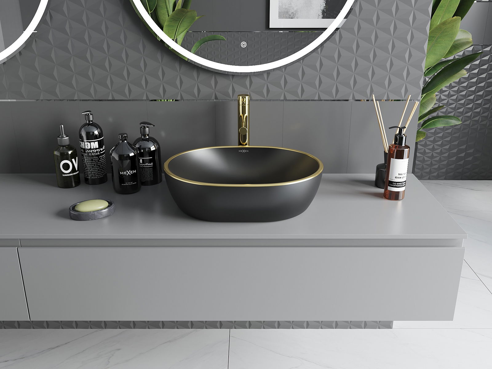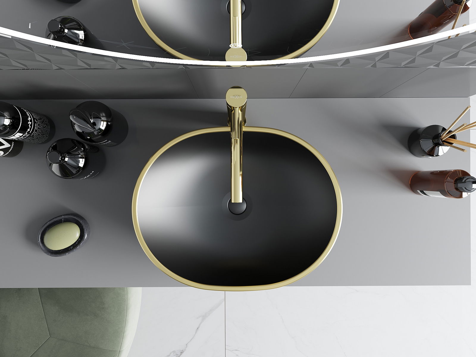 Mexen Viki tason päällinen pesuallas 48 x 35 cm, musta matta/kultainen reuna - 21054875