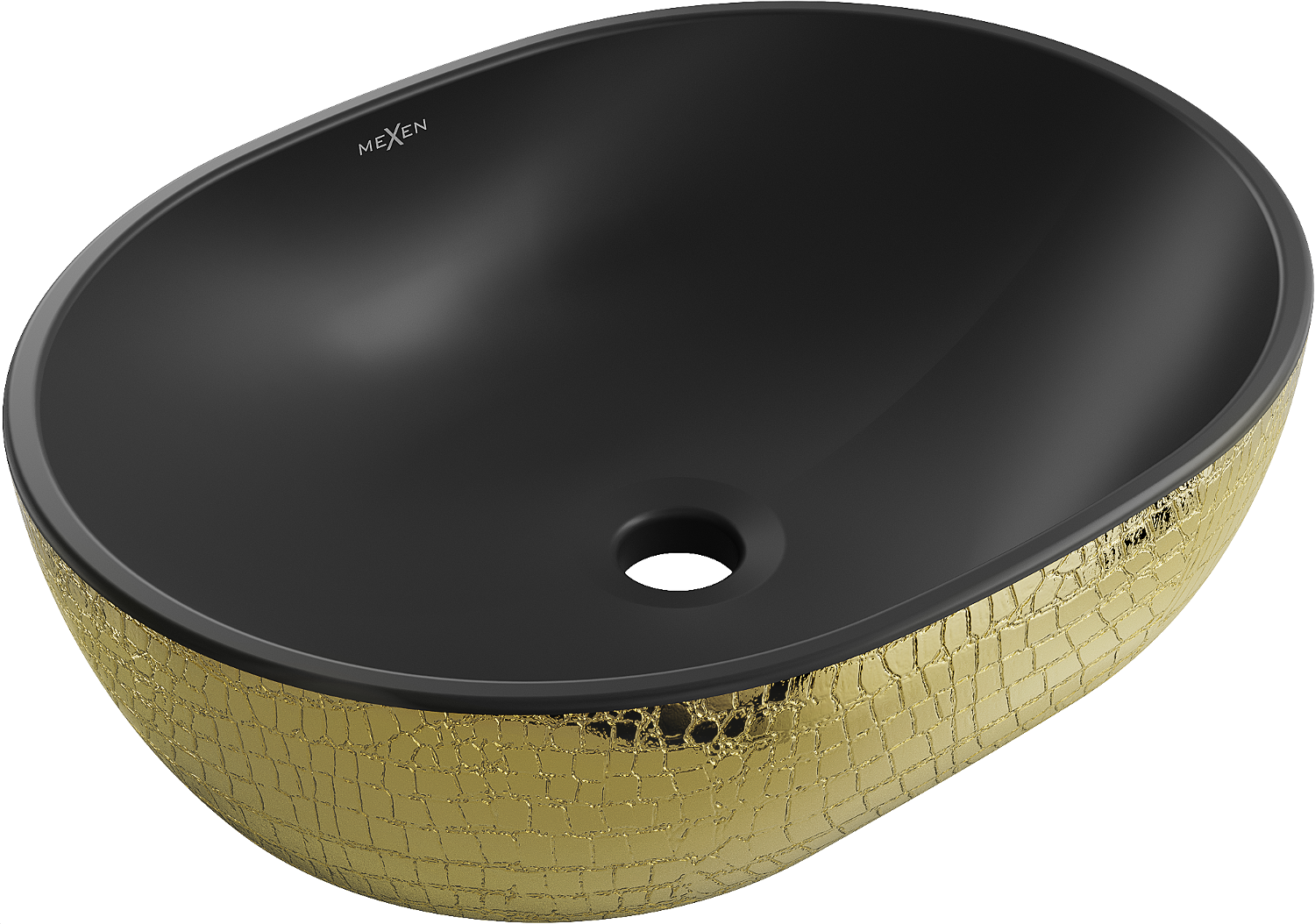 Mexen Viki pöytätason päällä oleva pesuallas 48 x 35 cm, musta matta/kultainen suomukuvio - 21054878