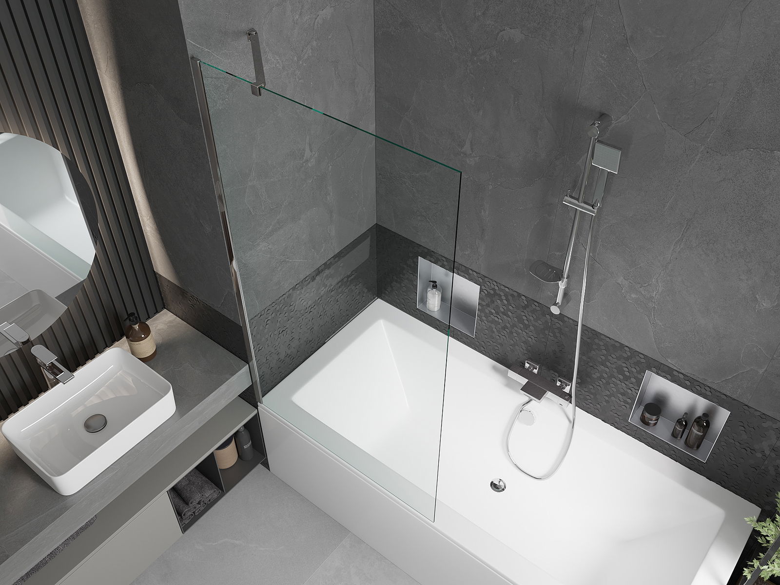 Tehokas suoja veden roiskumiselta kylvyn aikana. Sermi sisältää tiivisteitä, jotka sopivat täydellisesti lasipintaan ja kylpyammeen reunaan. Toiminnallinen ratkaisu, joka takaa turvallisuuden ja helpon puhtaana pidon.