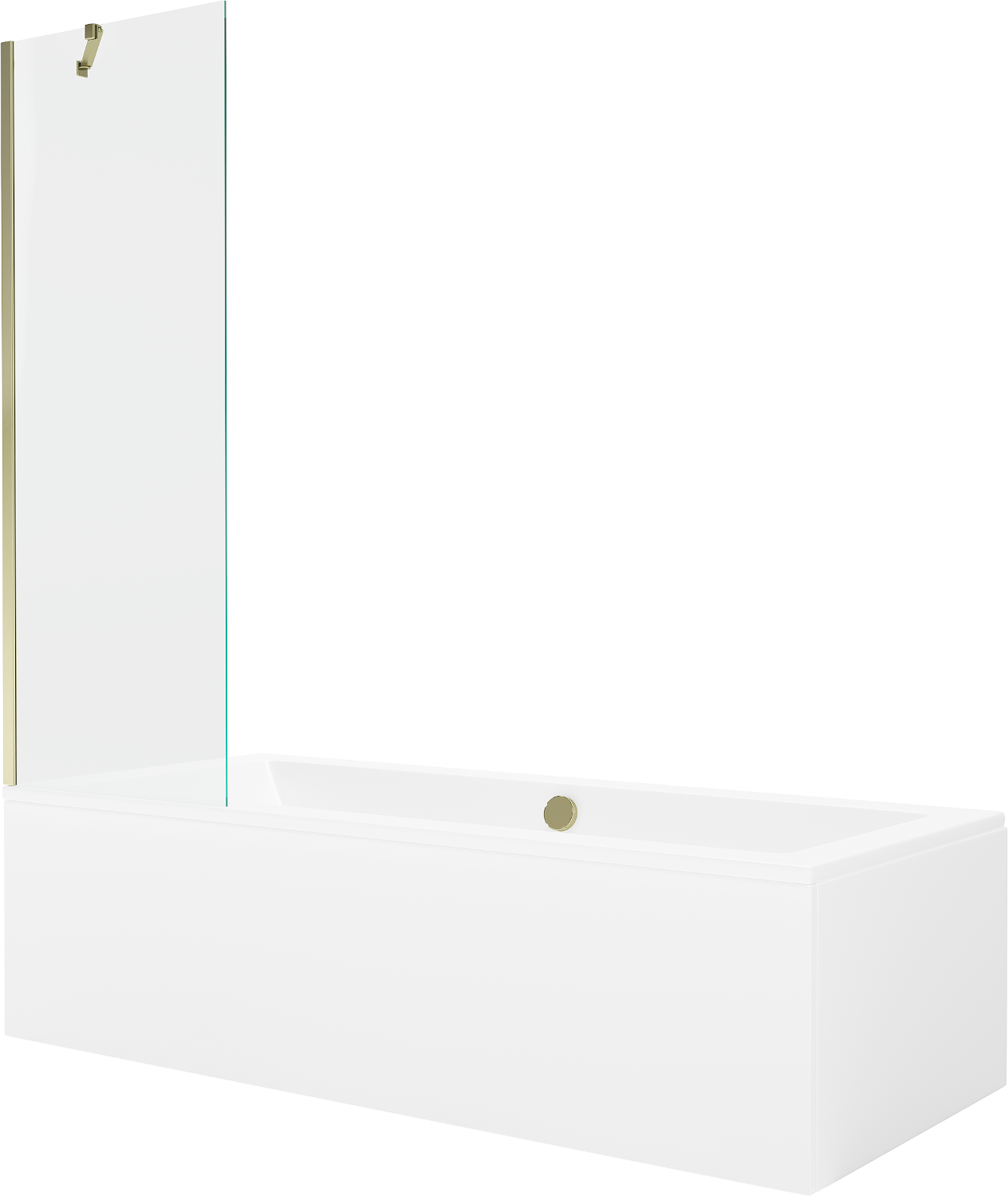 Mexen Cube suorakulmainen kylpyamme 180 x 80 cm, jossa kotelo ja 1-osainen suihkuseinä 60 cm, läpinäkyvä, kultainen