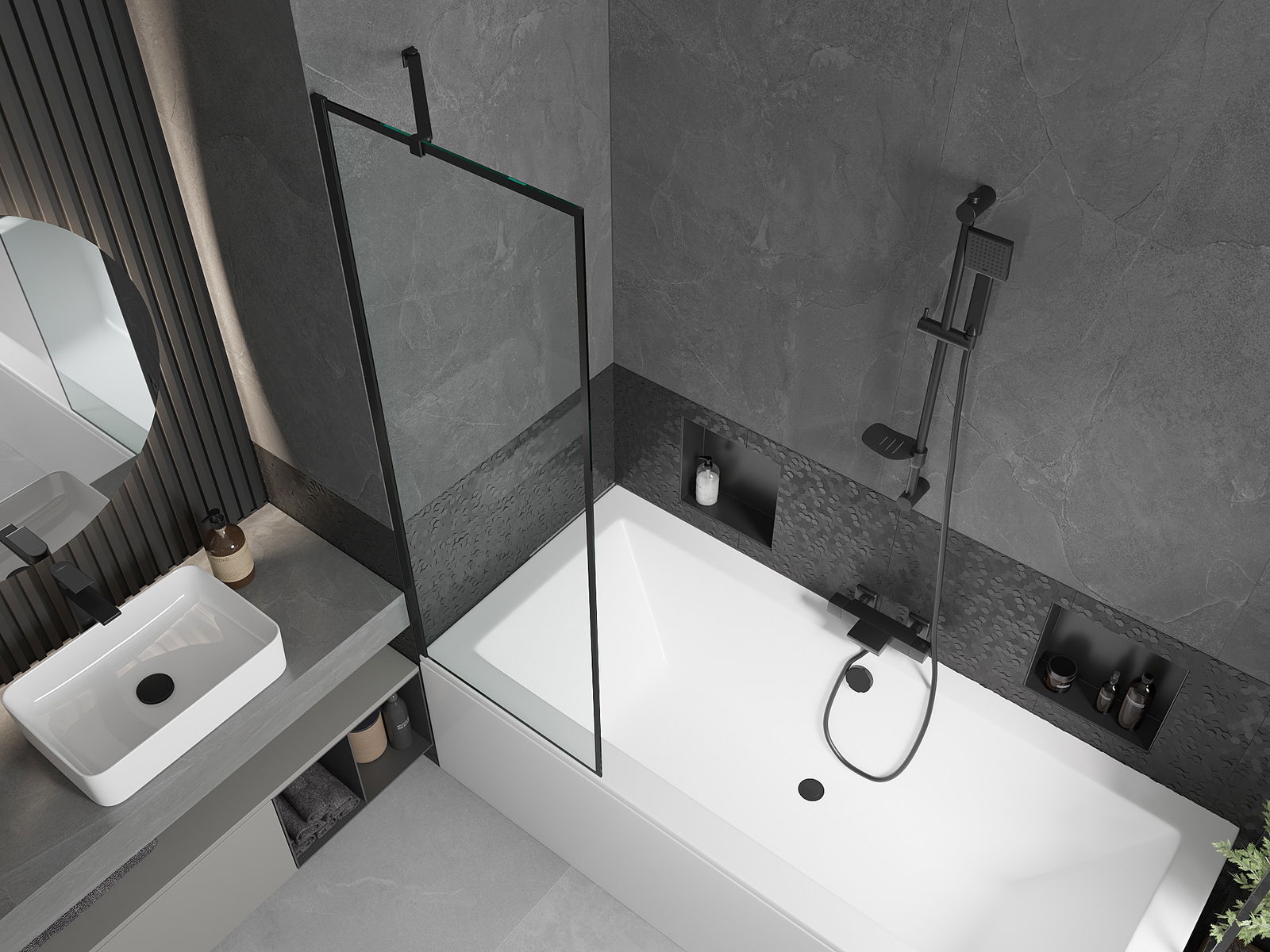 Mexen Cube suorakulmainen kylpyamme 180 x 80 cm koteloinnilla ja yksiosaisella suihkuseinällä 60 cm, musta kuvio
