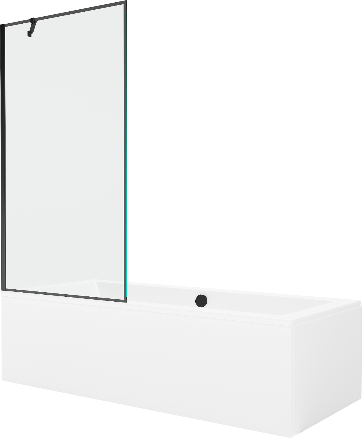 Mexen Cube suorakulmainen kylpyamme 180 x 80 cm, kotelolla ja yksiosaista suihkuseinää 90 cm, musta kuvio