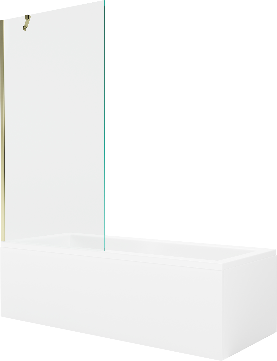 Mexen Cubik suorakulmainen kylpyamme 160 x 70 cm, kotelo ja yksiosainen 90 cm suihkuseinä, läpinäkyvä, kultainen