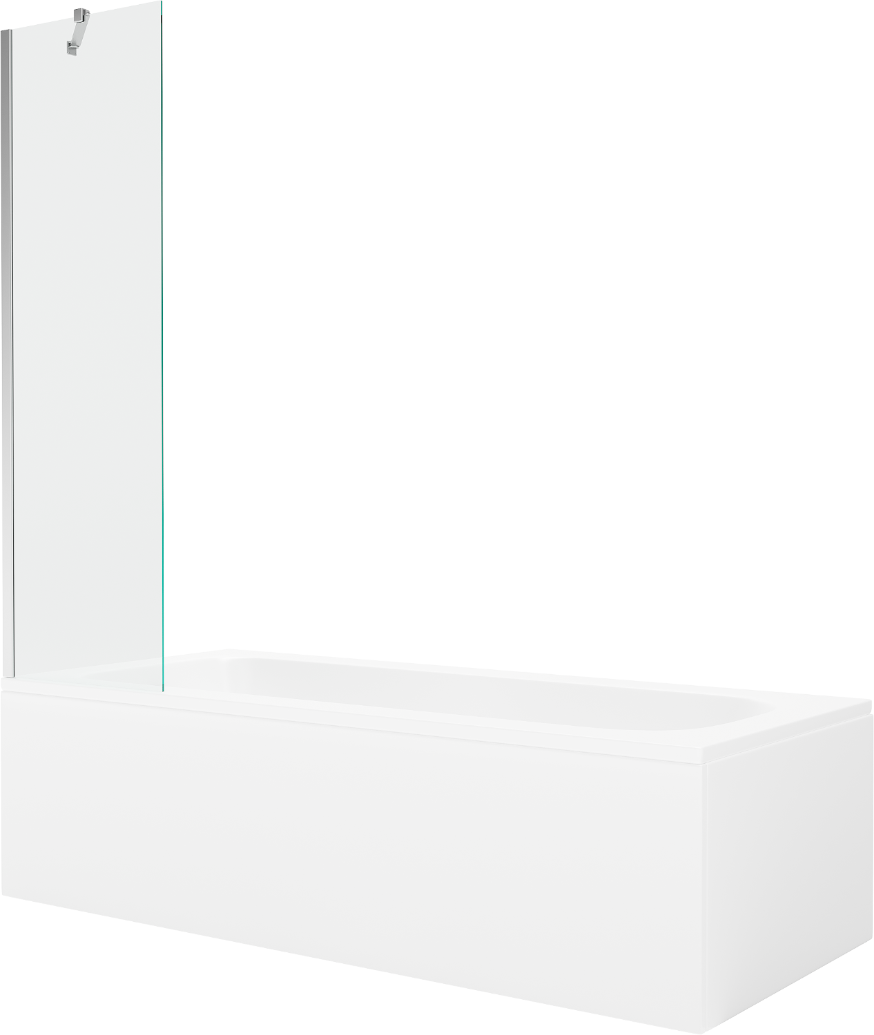Mexen Vega Suorakulmainen kylpyamme 160 x 70 cm, mukana kotelo ja yksiosainen 50 cm:n suihkuseinä, läpinäkyvä, kromi