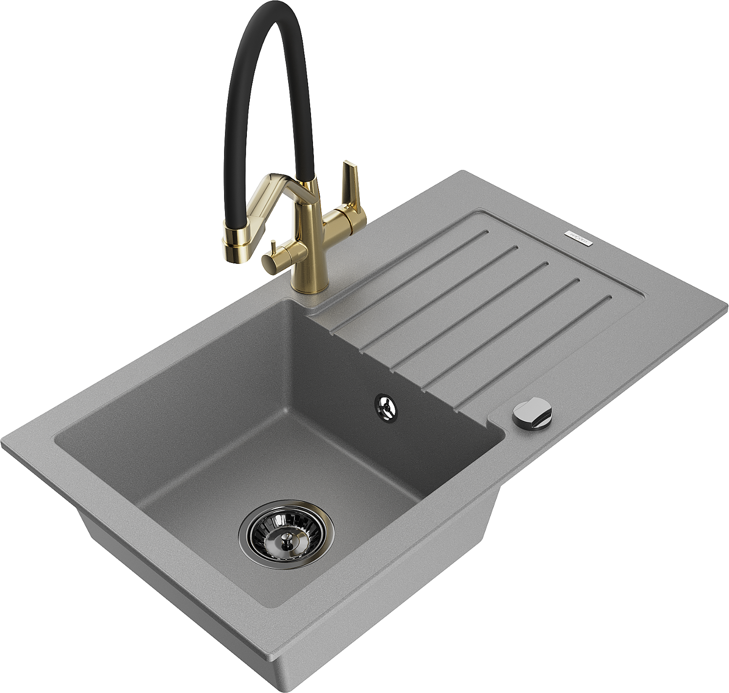 Mexen Pablo graniittinen 1-osainen pesuallas valutusalueella ja keittiöhana Duo, harmaa - 6510-71-671701-57-B