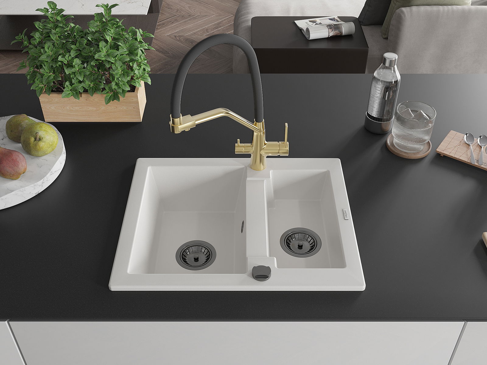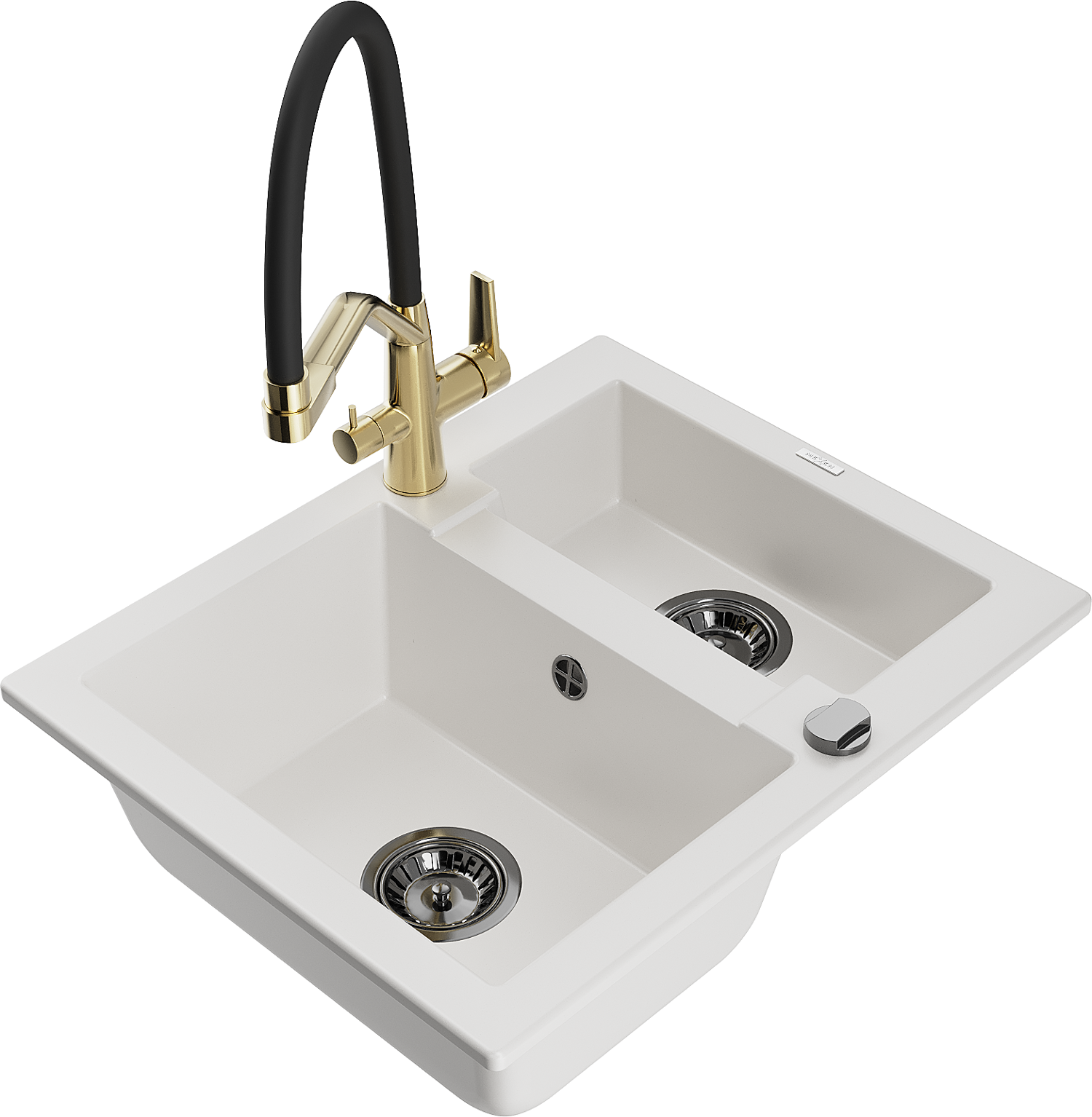 Mexen Carlos graniittinen 1,5-altaallinen pesuallas ja keittiöhana Duo, valkoinen - 6518-20-671701-57-B