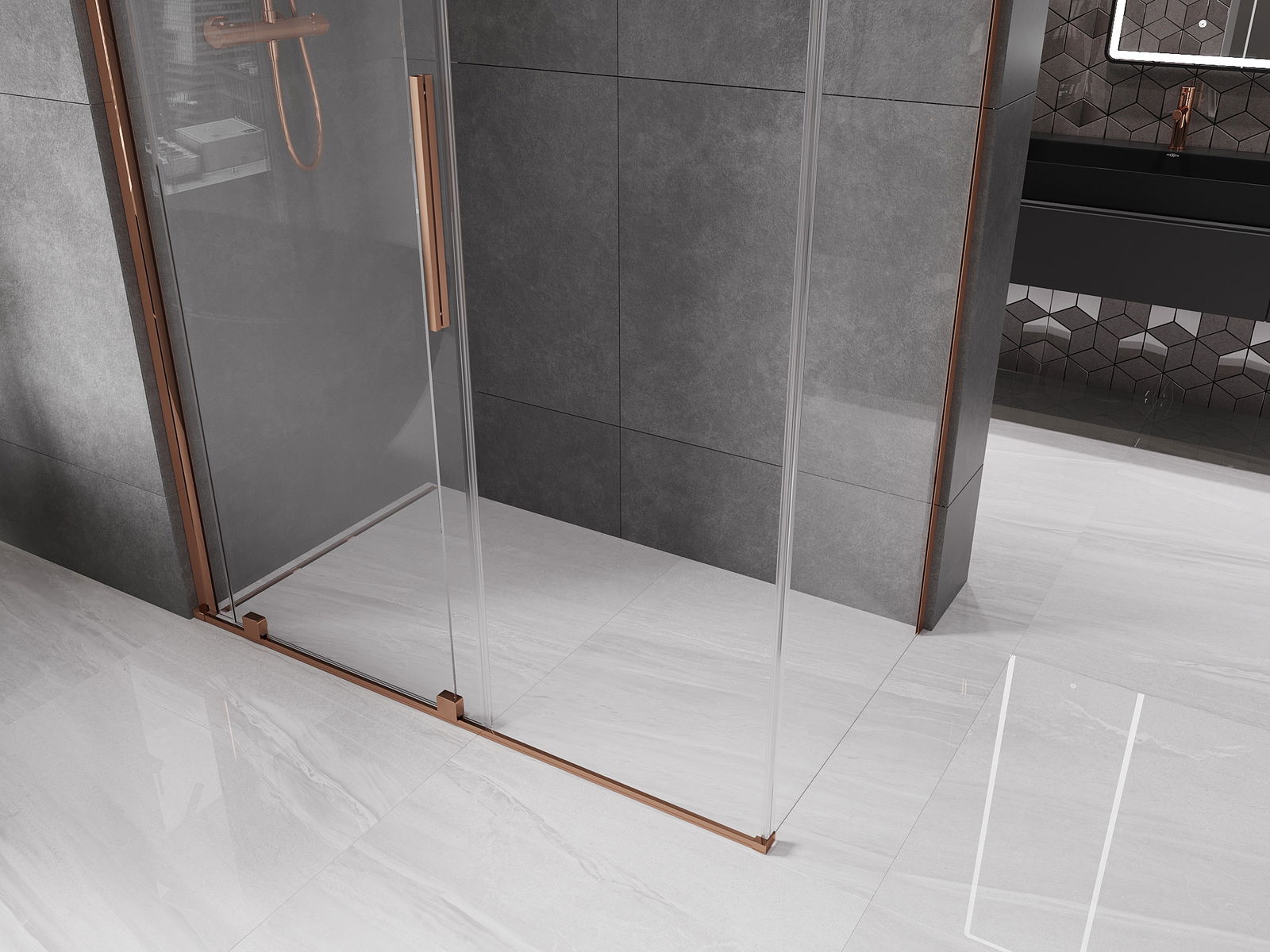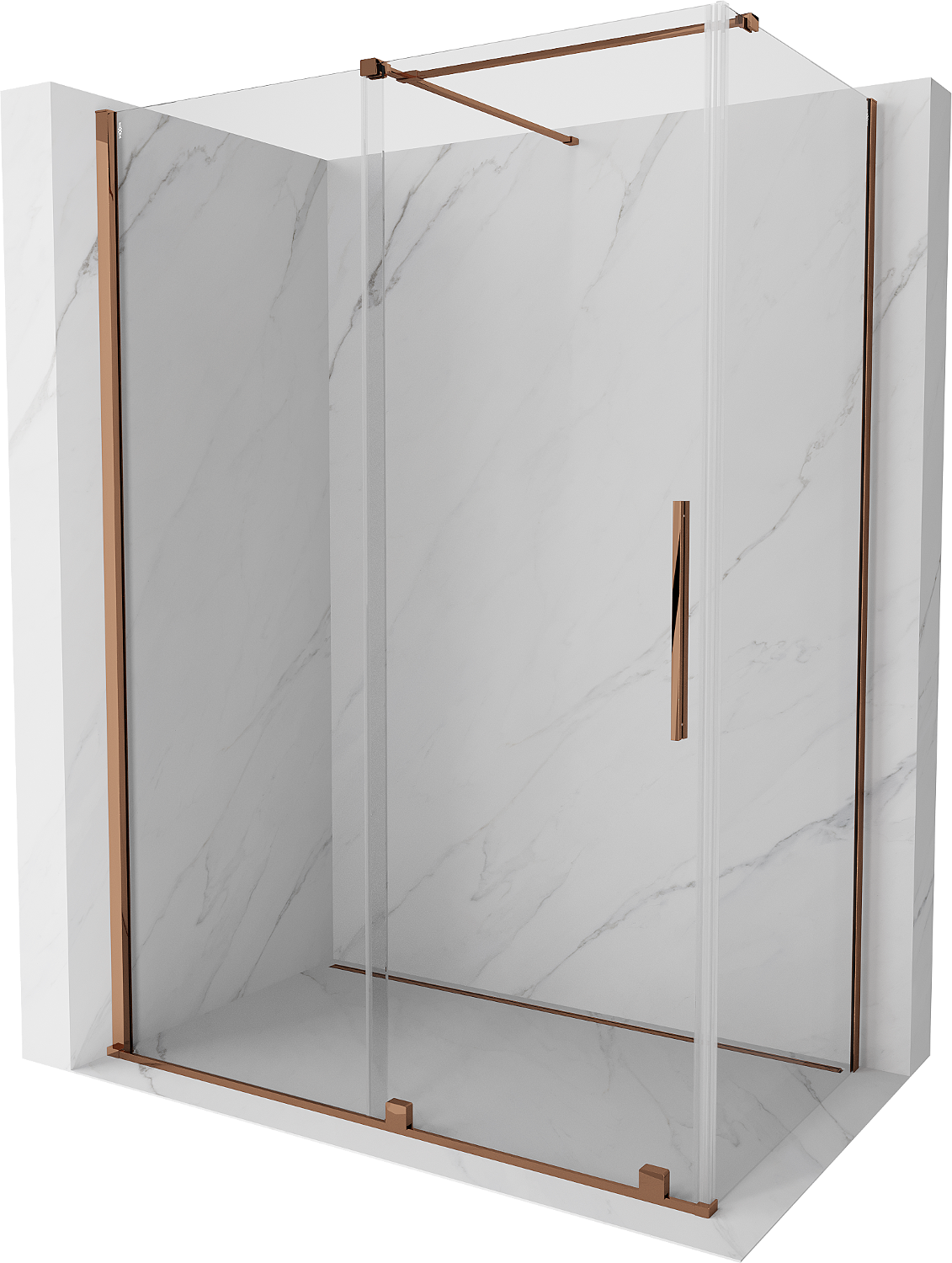 Mexen Velar liukuovi suihkukaappi 130 x 70 cm, läpinäkyvä, ruusukulta - 871-130-070-01-60