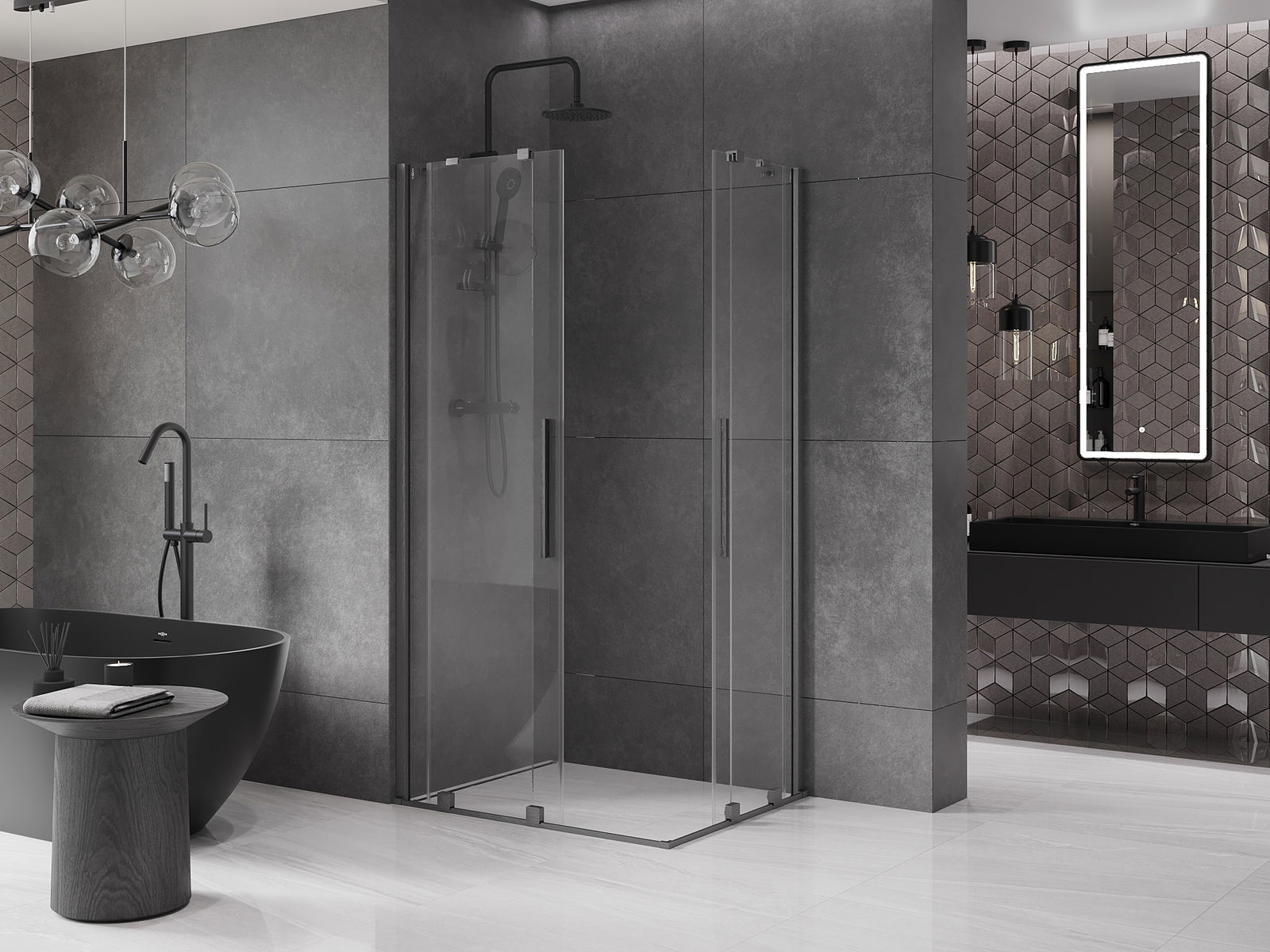 Mexen Velar Duo liukuva suihkukoppi 90 x 80 cm, läpinäkyvä, harjattu gun gray - 871-090-080-02-66