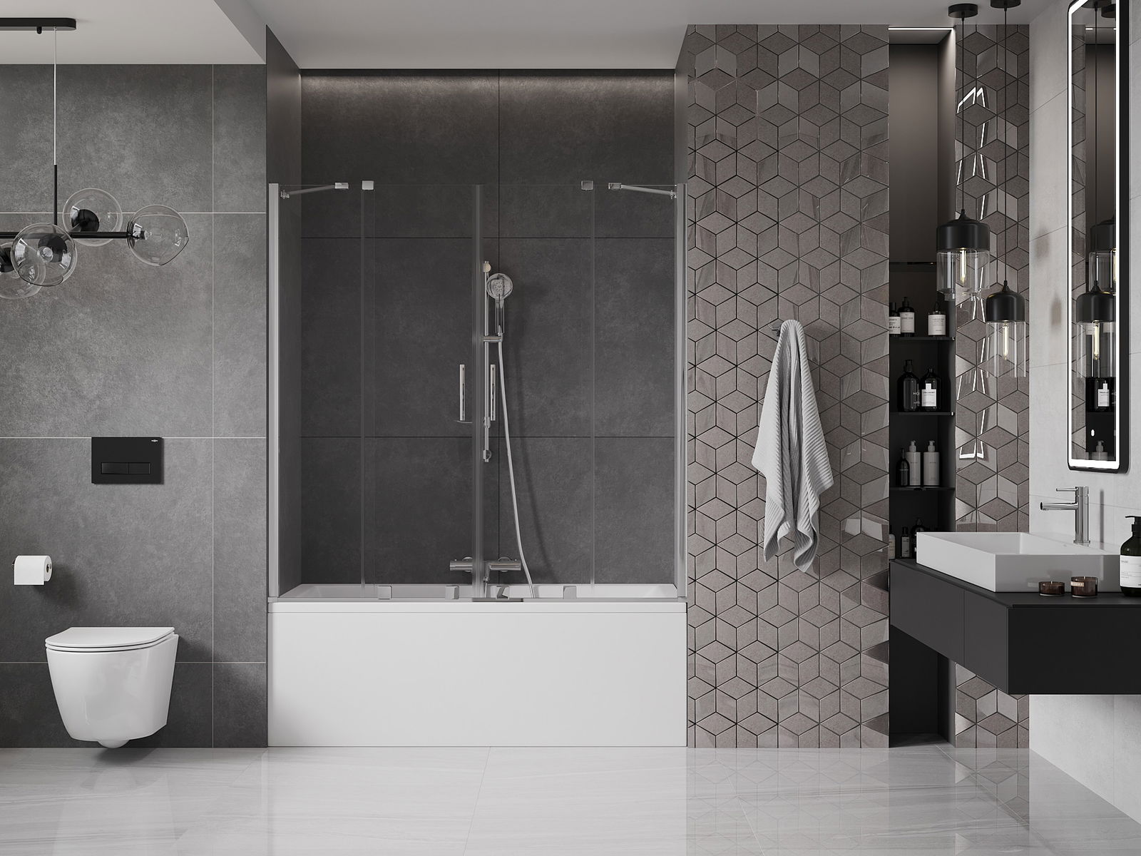Tehokas suoja veden roiskumiselta kylvyn aikana. Sermi sisältää tiivisteitä, jotka sopivat täydellisesti lasipintaan ja kylpyammeen reunaan. Toiminnallinen ratkaisu, joka takaa turvallisuuden ja helpon puhtaana pidon.
