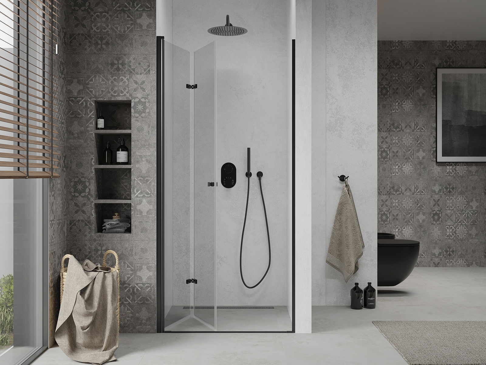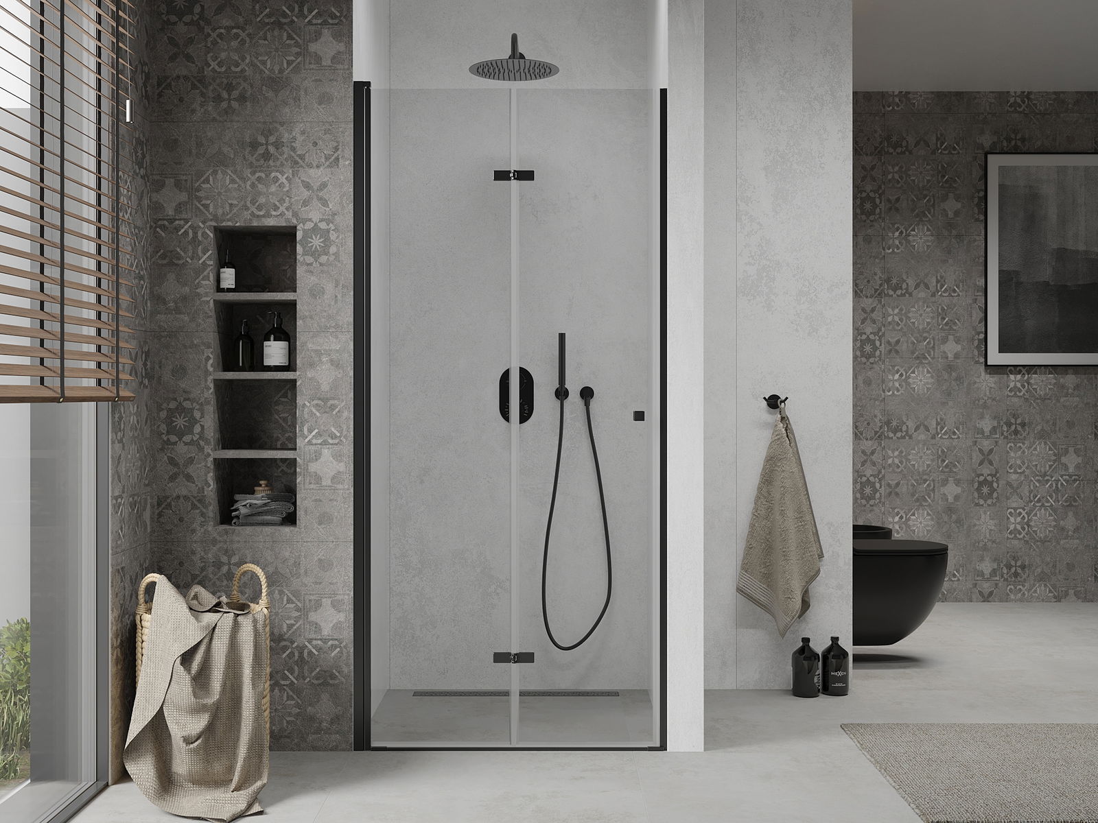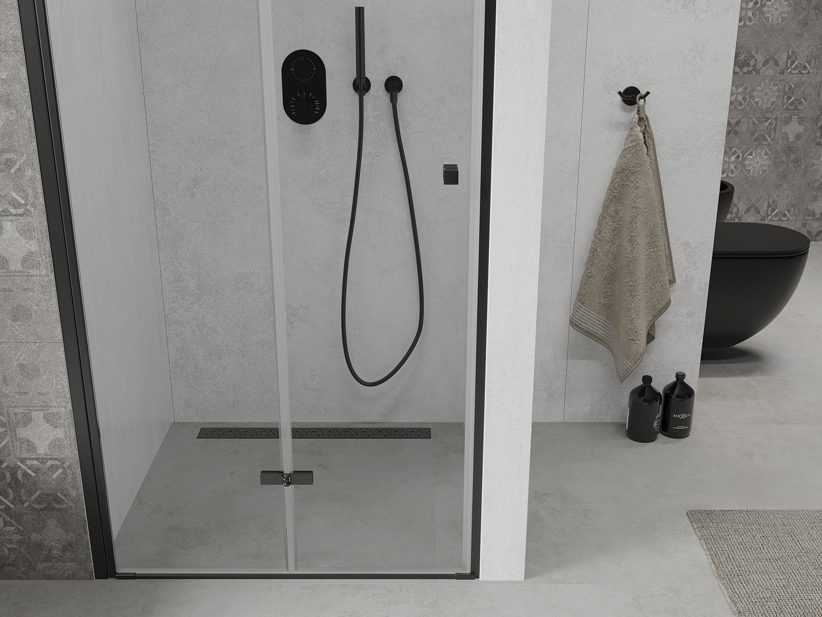 Mexen Lima taitettavat suihkuovet 90 cm, läpinäkyvä, musta - 856-090-000-70-00