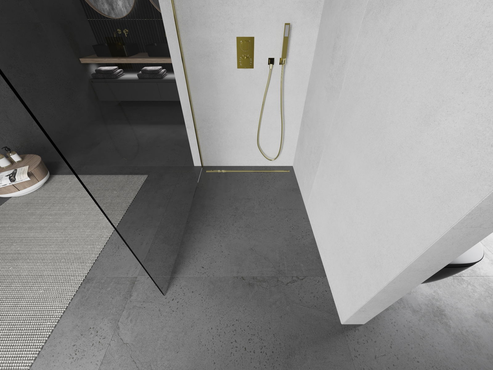 Mexen Kioto suihkuseinä Walk-in 120 x 200 cm, läpinäkyvä 8 mm, kulta - 800-120-101-50-00