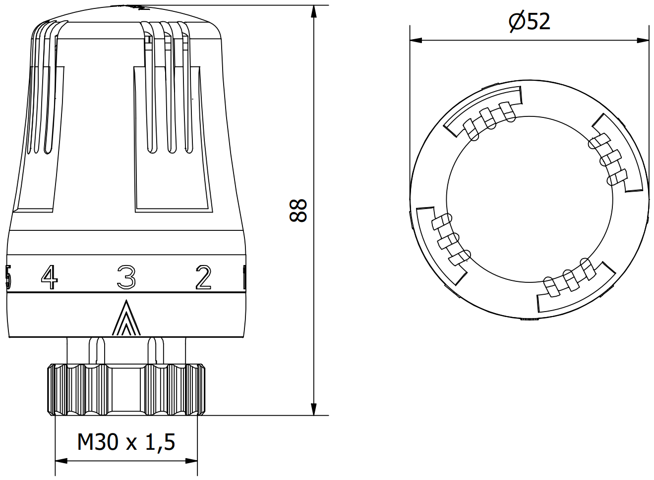 Tämä on standardikierteen koko, jota käytetään monissa termostaattipäissä, erityisesti lämmitysasennuksissa käytettävissä laitteissa. Symboli M30 tarkoittaa, että kierteen ulkohalkaisija on 30 mm ja 1,5 mm tarkoittaa, että kierteen nousu on 1,5 mm.