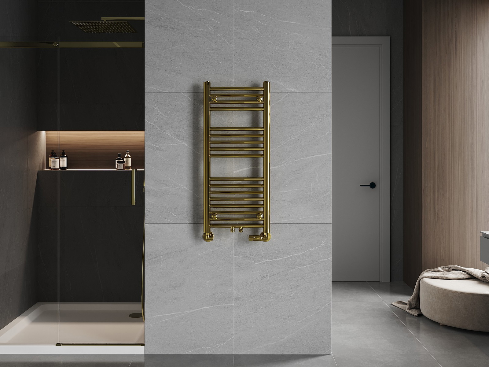 Mexen Ares on kylpyhuoneen patteri, jossa on elegantti kultainen viimeistely, joka yhdistää tyylin ja tehokkuuden. Sen mitat ovat 900 x 400 mm, mikä tekee siitä ihanteellisen valinnan erilaisiin kylpyhuonekokonaisuuksiin. Teräsrakenteensa ansiosta se painaa vain 5,24 kg, ja sen lämmitysteho on 246 W lämpötilassa 75/65/20 °C. Siinä on joustavat liitäntävaihtoehdot ja mahdollisuus asentaa lämmitin, mikä tarjoaa monipuoliset asennusmahdollisuudet. Korroosionkestävyys ja reaktio tuleen A1 takaavat kestävyyden ja turvallisuuden käytössä. Mukana tulee asennussarja ja tarvikkeet.