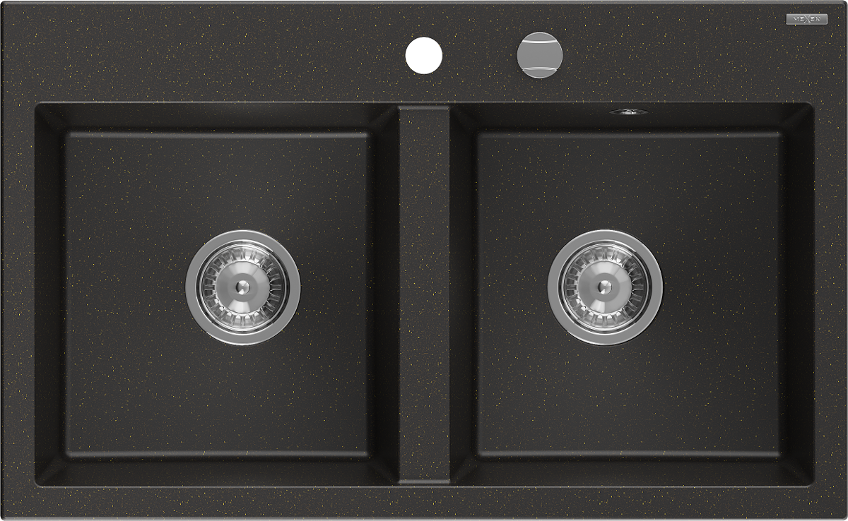 Mexen Hektor 2-osastoinen graniittipesuallas 800 x 480 mm, musta/kulta metallinhohto, kromi sifoni - 6521802000-75