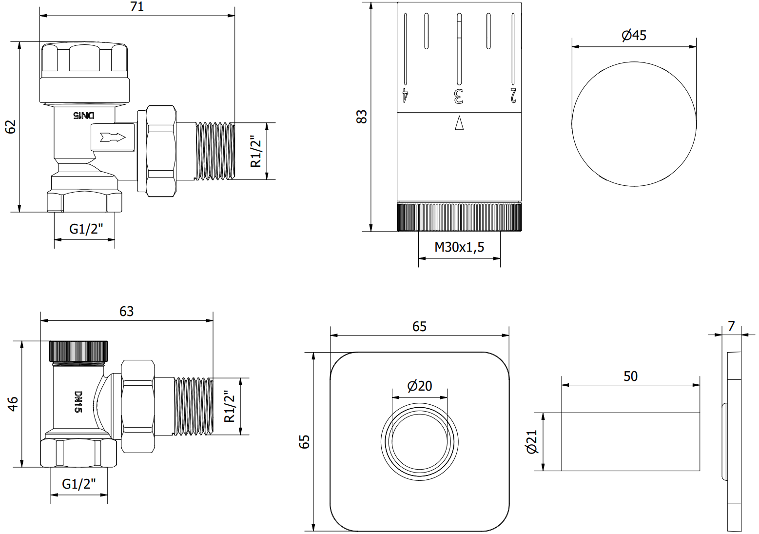 Venttiilien liitännän halkaisija: G 1/2"