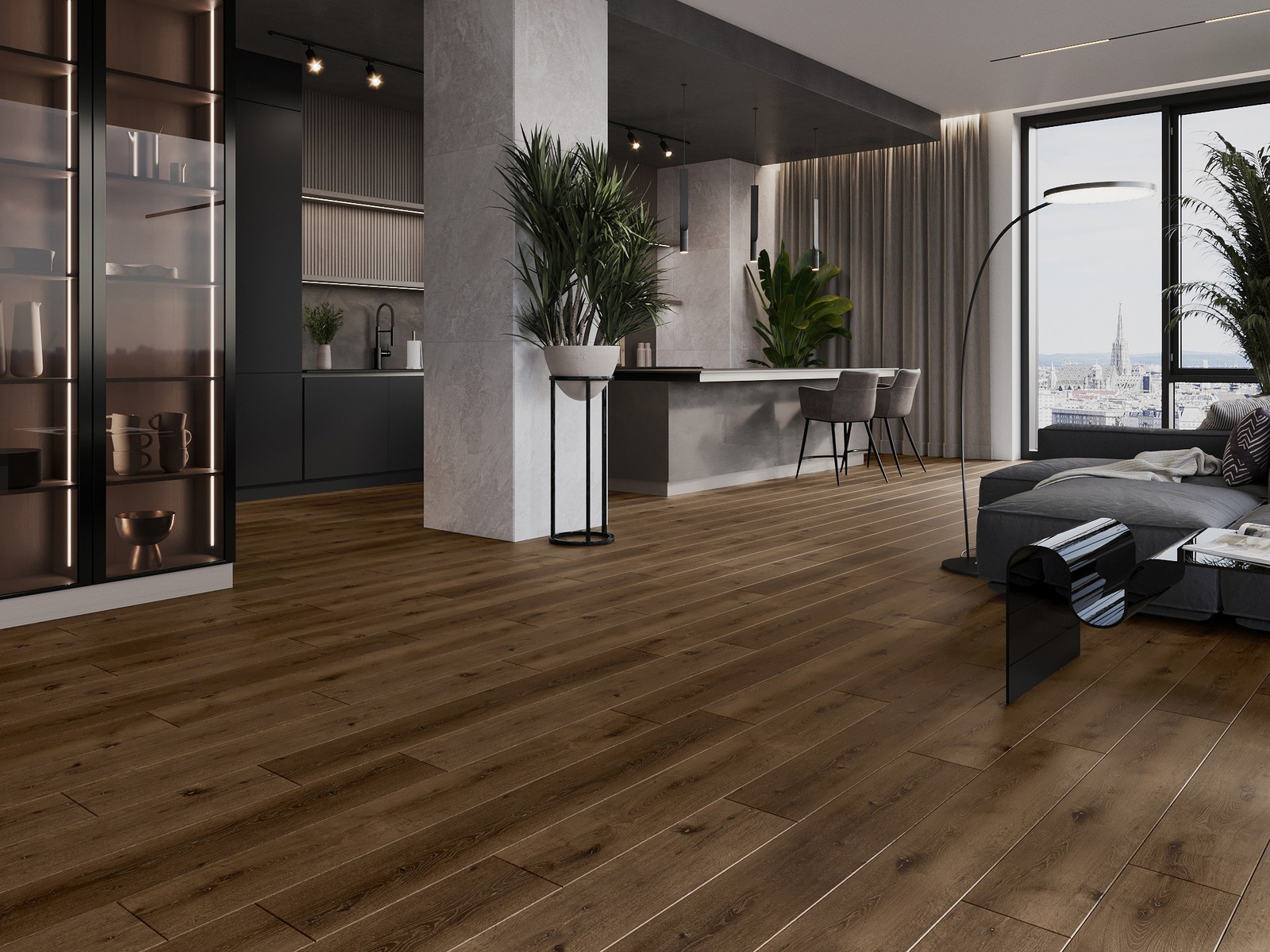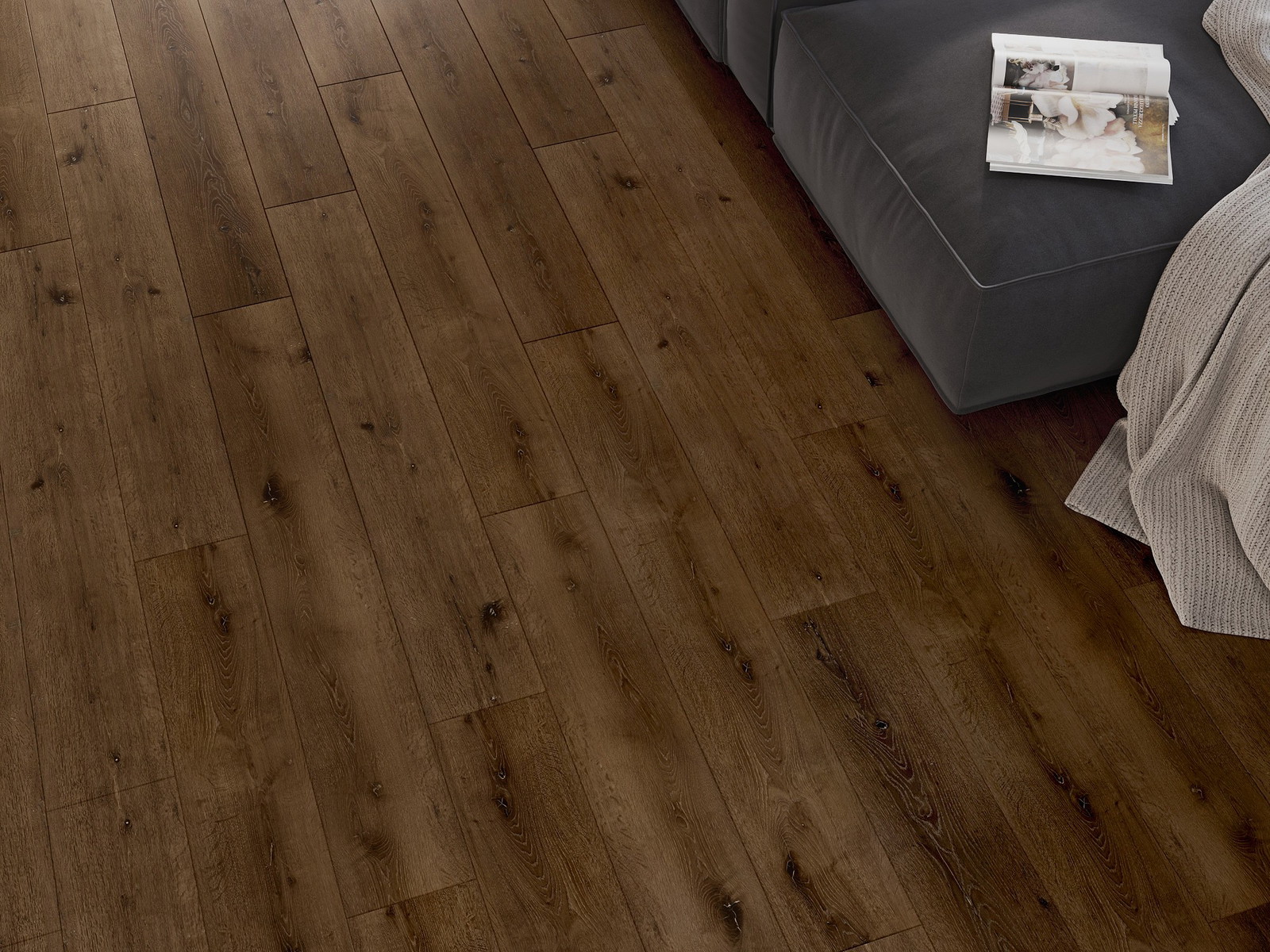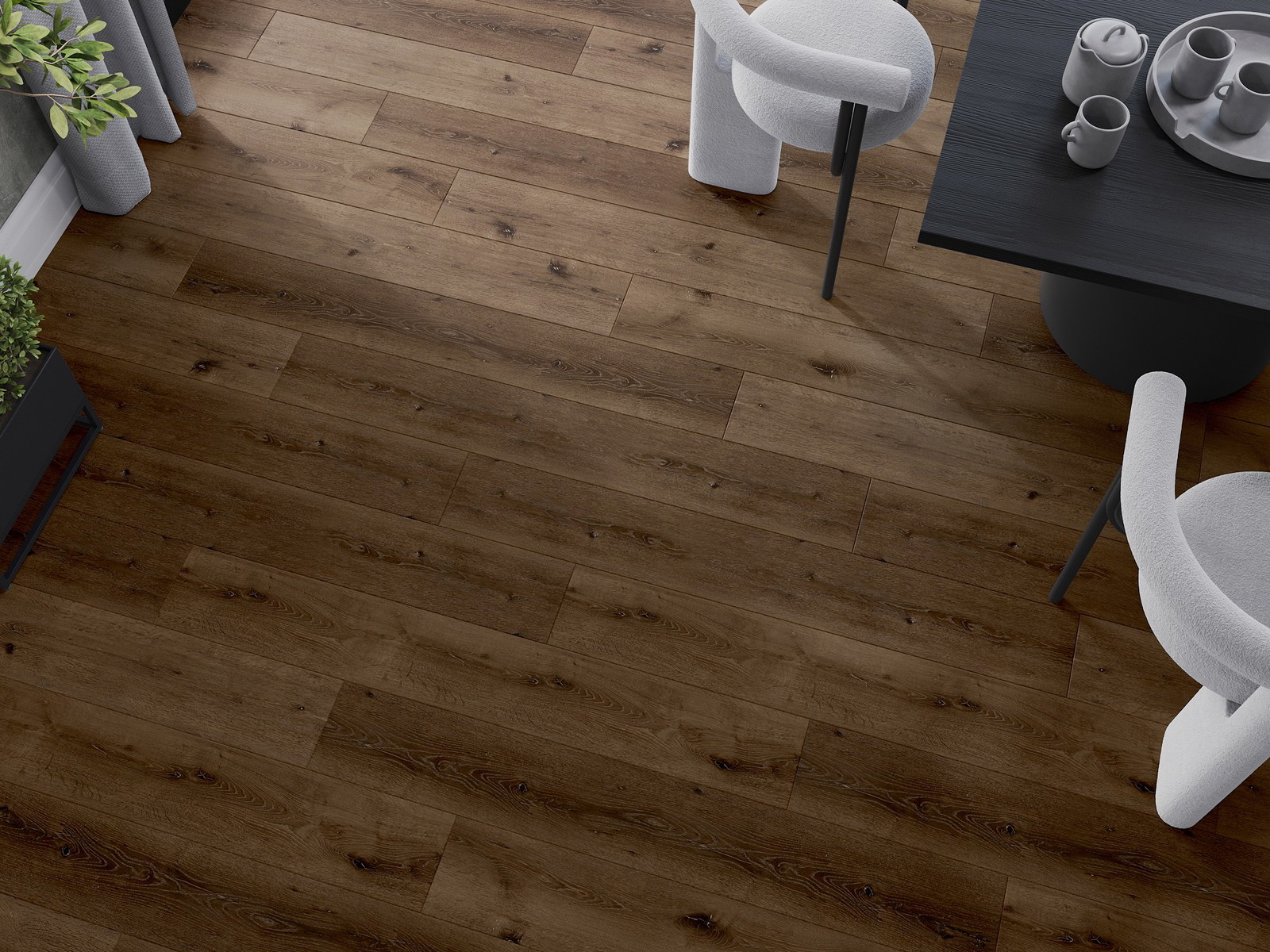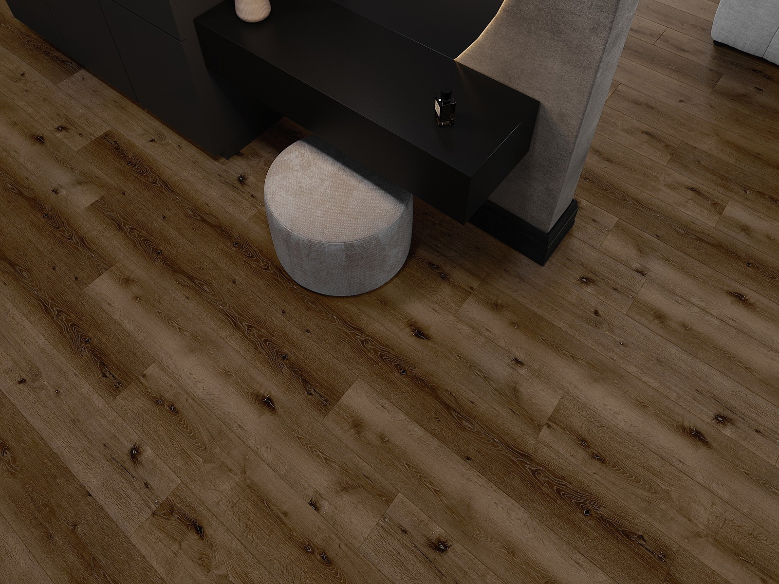 Paneeleissa on nelipuolinen sauma - jokainen sivu on jyrsitty niin, että asennuksen jälkeen syntyy V-muotoinen liitos. Tämä muotoilu tekee lattiasta selkeämmän rakenteen, mikä antaa sille syvyyttä ja esteettisyyttä. Tätä efektiä arvostetaan erityisesti moderneissa sisustuksissa, joissa yksityiskohdat korostavat sisustuksen ainutlaatuista ulkonäköä.