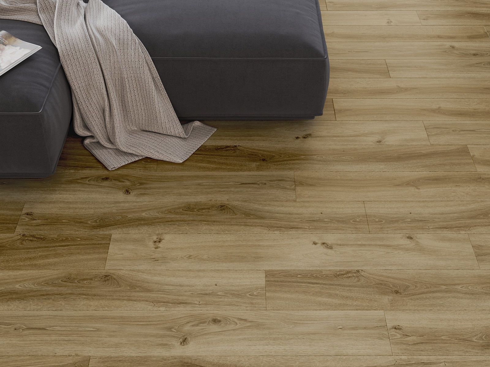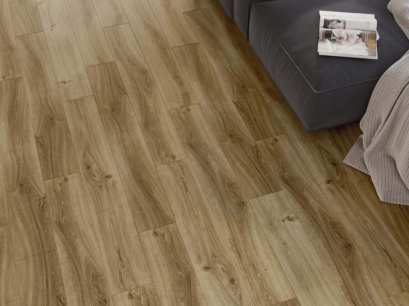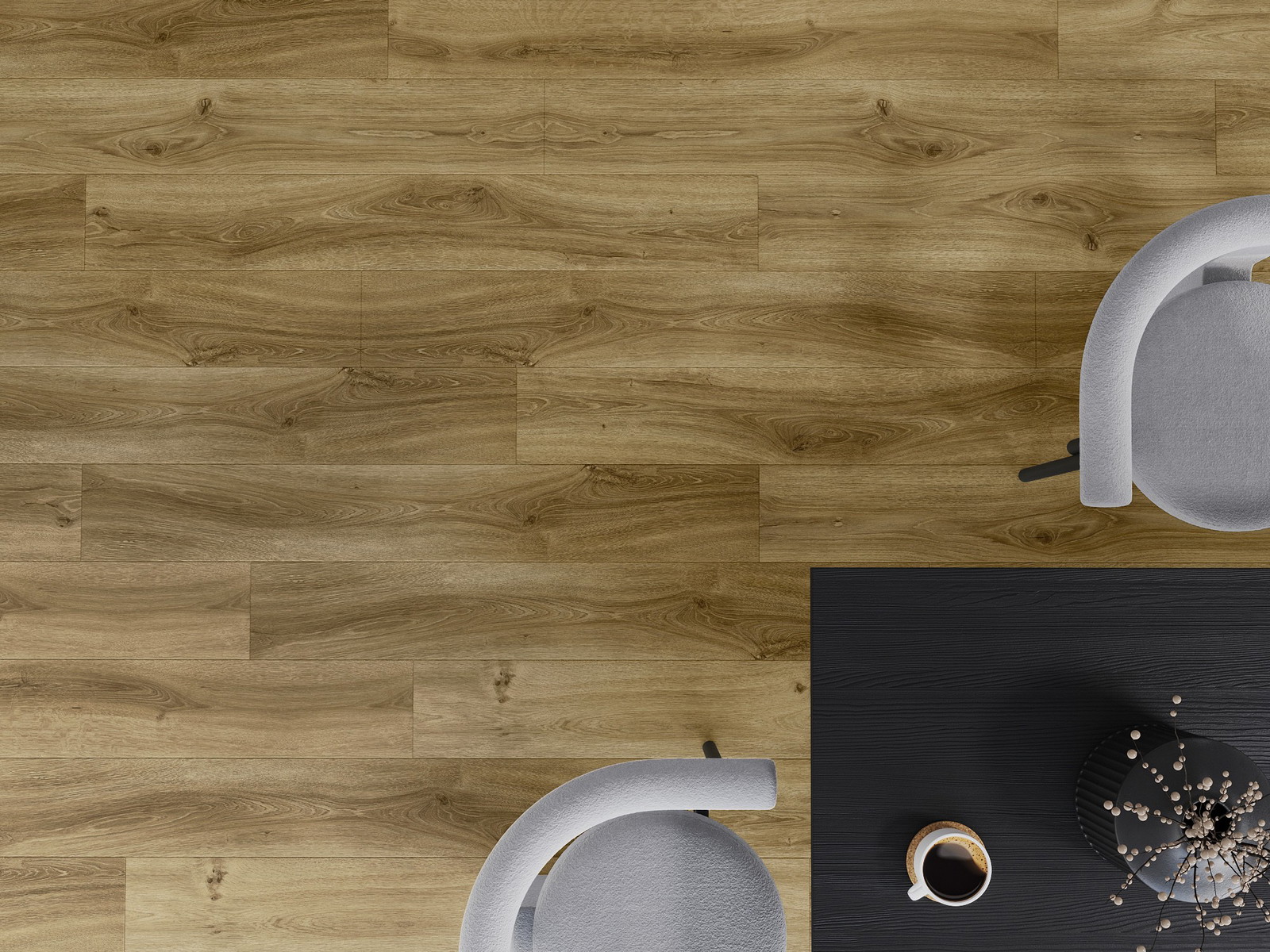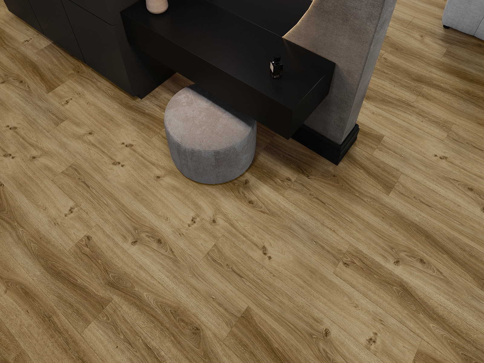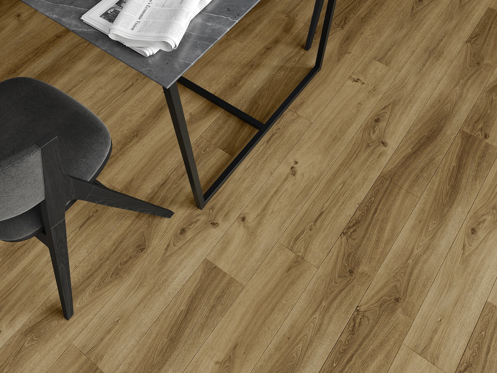 Paneeleissa on nelipuolinen sauma - jokainen sivu on jyrsitty niin, että asennuksen jälkeen syntyy V-muotoinen liitos. Tämä muotoilu tekee lattiasta selkeämmän rakenteen, mikä antaa sille syvyyttä ja esteettisyyttä. Tätä efektiä arvostetaan erityisesti moderneissa sisustuksissa, joissa yksityiskohdat korostavat sisustuksen ainutlaatuista ulkonäköä.
