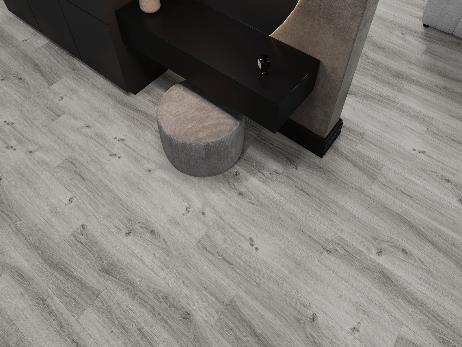 Paneeleissa on nelipuolinen sauma - jokainen sivu on jyrsitty niin, että asennuksen jälkeen syntyy V-muotoinen liitos. Tämä muotoilu tekee lattiasta selkeämmän rakenteen, mikä antaa sille syvyyttä ja esteettisyyttä. Tätä efektiä arvostetaan erityisesti moderneissa sisustuksissa, joissa yksityiskohdat korostavat sisustuksen ainutlaatuista ulkonäköä.