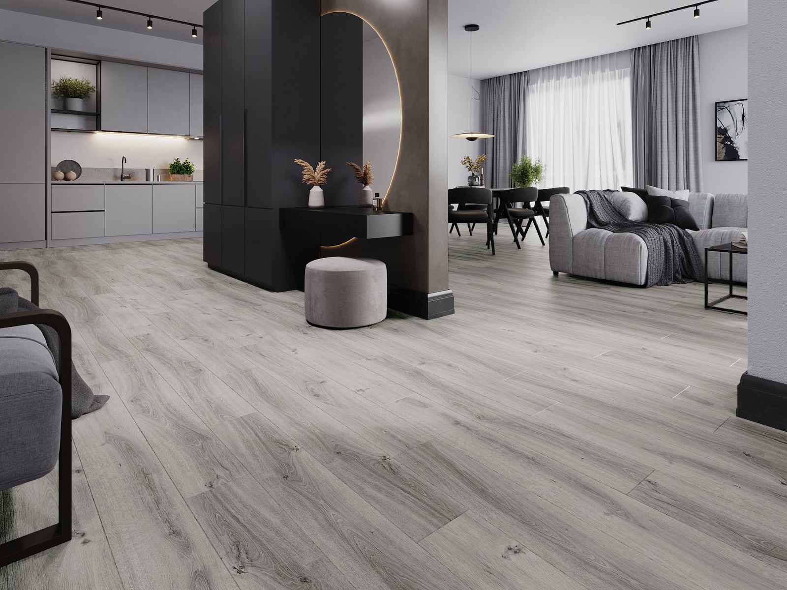 Vinyylipaneelit tarjoavat erinomaisen kestävyyden ja esteettisyyden. Niiden paksuus on 6,5 mm, mikä takaa erinomaisen kestävyyden mekaanisia vaurioita ja naarmuja vastaan. Paneelit ovat kooltaan 1240 x 182 mm ja niissä on 4-puoleinen V-sauma, mikä korostaa niiden eleganttia ulkonäköä. Kiitos vedenkestävyyden (100%) ja integroidun IXPE-alustan (1,5 mm), asennus on yksinkertaista ja tehokasta. Puhdistamista helpottava pinta tekee niistä ihanteellisen ratkaisun jokaiseen sisustukseen.