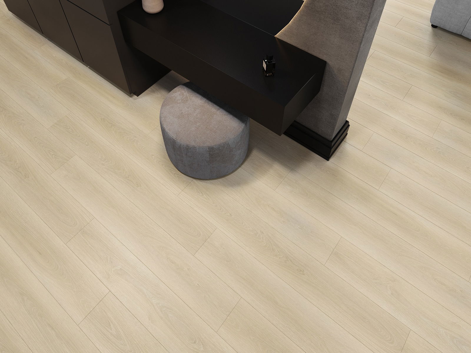 Paneeleissa on nelipuolinen sauma - jokainen sivu on jyrsitty niin, että asennuksen jälkeen syntyy V-muotoinen liitos. Tämä muotoilu tekee lattiasta selkeämmän rakenteen, mikä antaa sille syvyyttä ja esteettisyyttä. Tätä efektiä arvostetaan erityisesti moderneissa sisustuksissa, joissa yksityiskohdat korostavat sisustuksen ainutlaatuista ulkonäköä.