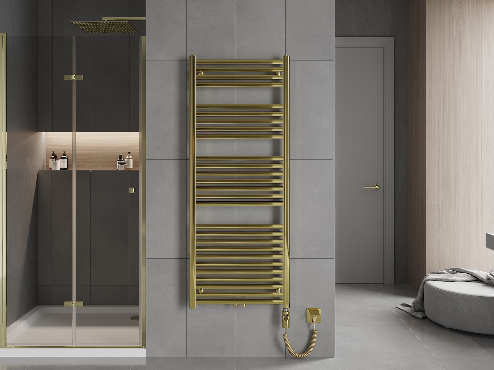Mexen Hades on tyylikäs kultainen sähköradiaattori, joka yhdistää tyylin ja toiminnallisuuden. Mitat 1500 x 600 mm, valmistettu kestävästä teräksestä, tarjoaa 600 W:n lämmitystehon ja siinä on 27 lämmitystankoa. Kosketusohjauksen ja LED-ohjauksen ansiosta Sensitive-toiminnoilla lämpötila voidaan asettaa tarkasti 40°C - 65°C. Comfort-vaihtoehdot helpottavat kuivausta, ja lapsilukko lisää turvallisuutta. Varustettu sisäänrakennetulla termostaatilla ja suojauksella "kuivana" työskentelyltä sekä korroosionkestävällä maalauspinnalla. Suojausaste IP44 ja korkealaatuinen asennus lisäävät sen käyttömukavuutta.