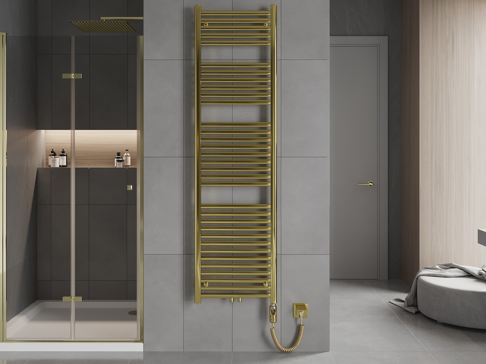 Mexen Hades on moderni sähkölämmitin, jonka korkeus on 1800 mm ja leveys 500 mm, erottuen elegantilla kultaisella värillä. Lämpöteholla 900 W ja 33 lämmitystangolla se tarjoaa nopean ja tehokkaan tilojen lämmityksen. Kosketusohjaus LED-näytöllä, varustettu Sensitive- ja Comfort-toiminnoilla, jotka mahdollistavat tarkan lämpötilan hallinnan. Tuotteessa on myös lapsilukko ja lisäsuoja kuivakäynniltä. Korkealaatuinen, korroosionkestävä maalipinta takaa pitkäikäisyyden. Pakkaus sisältää kiinnikkeet, asennussarjan ja peitetulpat.
