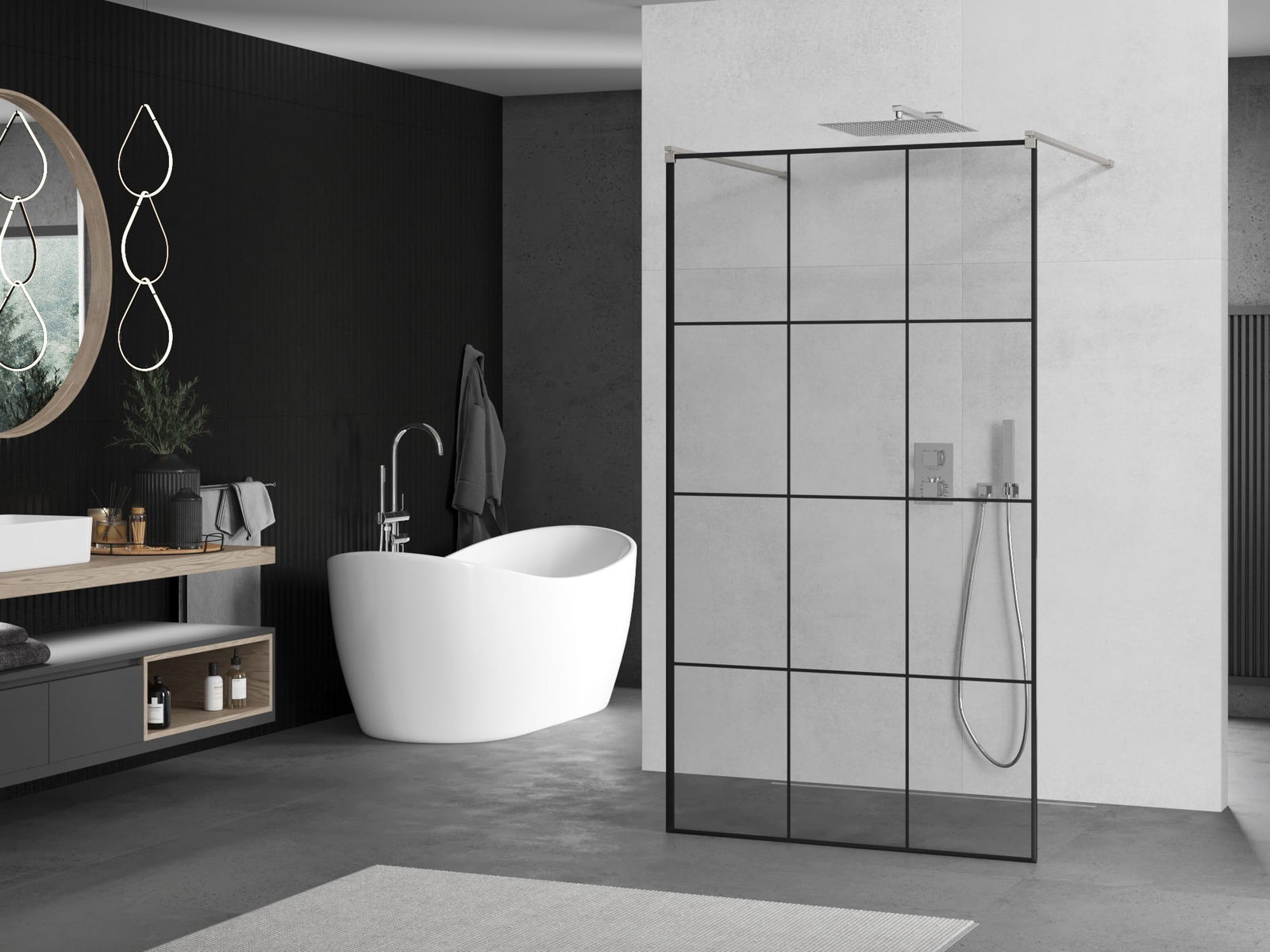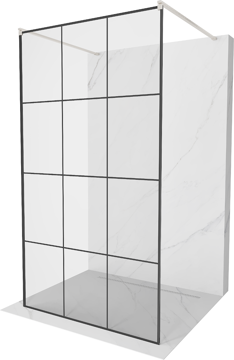 Mexen Kioto vapaasti seisova suihkuseinä 120 x 200 cm, musta ruudukko 8 mm, harjattu nikkeli - 800-120-002-97-77