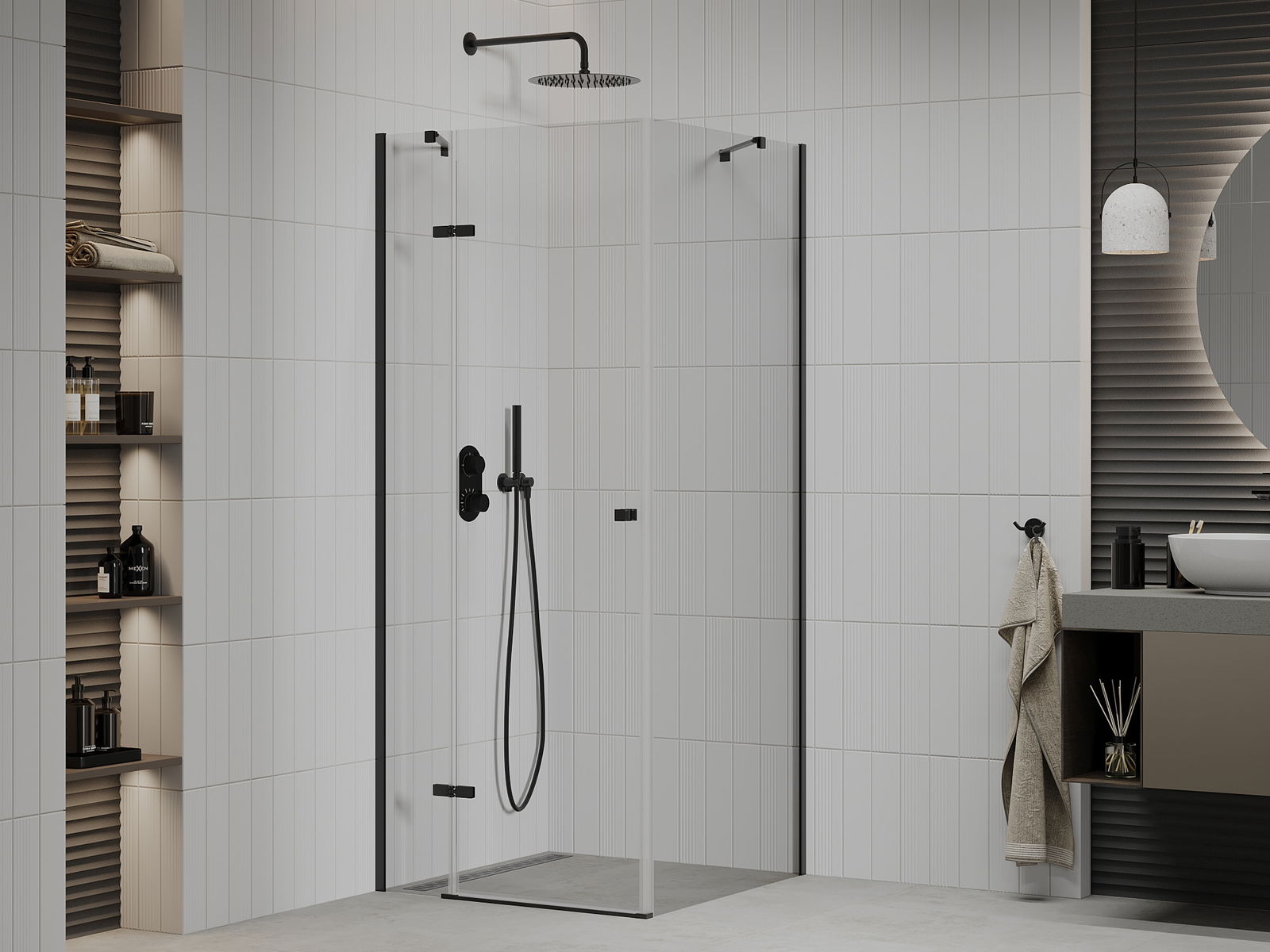 Mexen Roma suihkukaappi, avattava 90 x 90 cm, kirkas, musta - 854-090-090-70-00