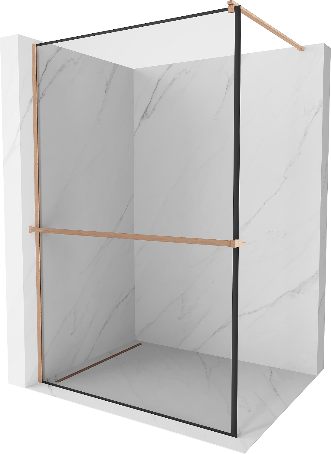 Mexen Kioto+ suihkuseinä hyllyllä Walk-in 120 x 200 cm, musta kehys, harjattu kupari - 800-120-121-65-70