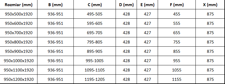 Koko: 95x100 cm (ovi 95 cm, seinä 100 cm)