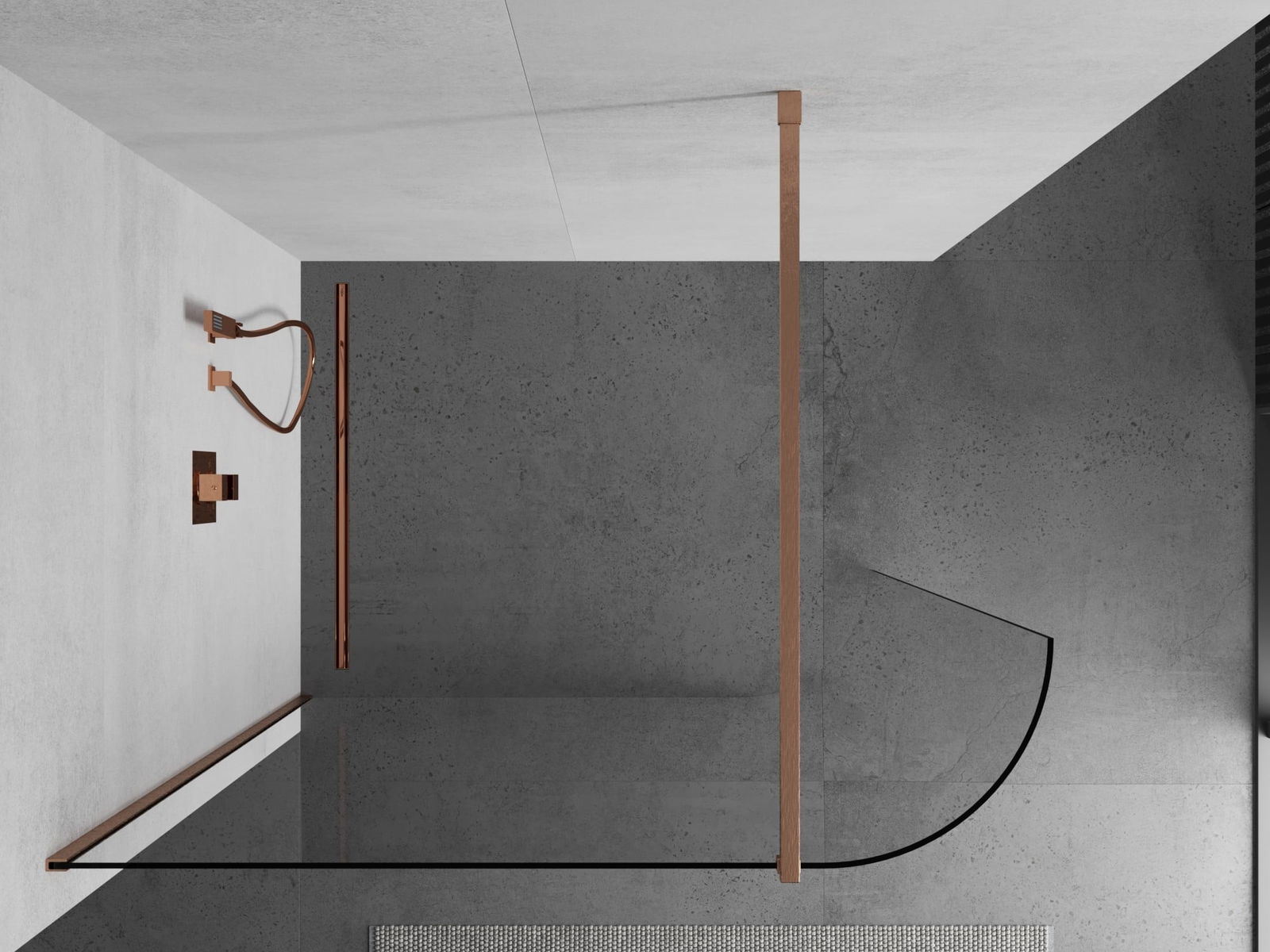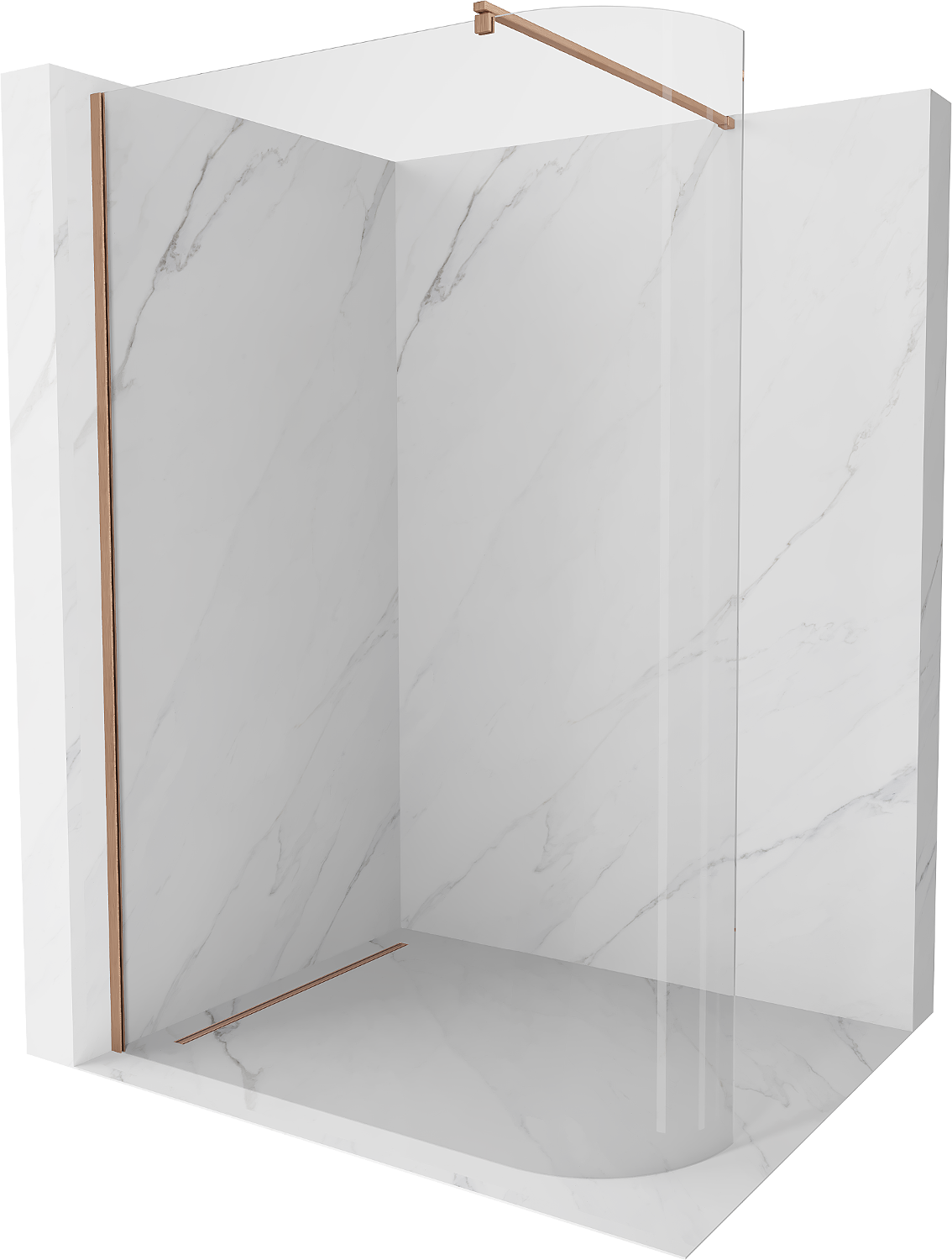 Mexen Kioto-R kaarre suihkuseinä Walk-in 80 x 200 cm, läpinäkyvä 8 mm, harjattu kupari - 800-080-101-65-06