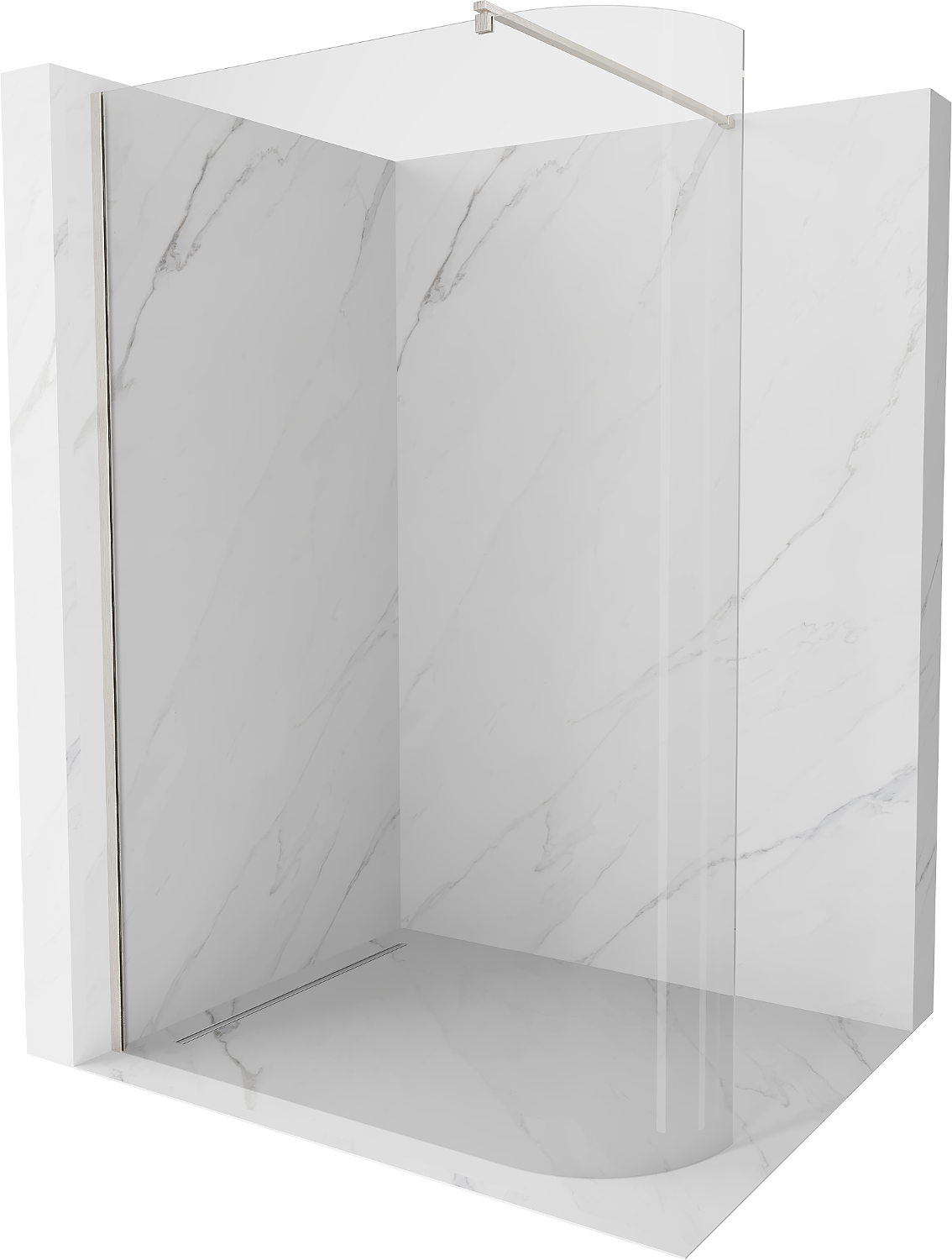 Mexen Kioto-R kaarrettu walk-in suihkuseinä 90 x 200 cm, läpinäkyvä 8 mm, harjattu nikkeli - 800-090-101-97-06