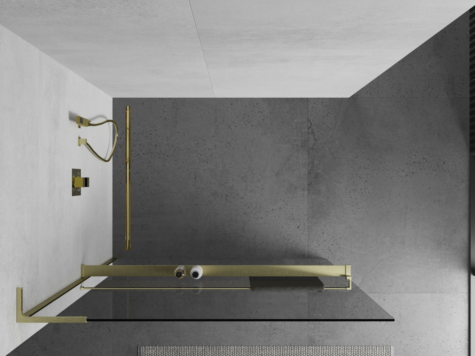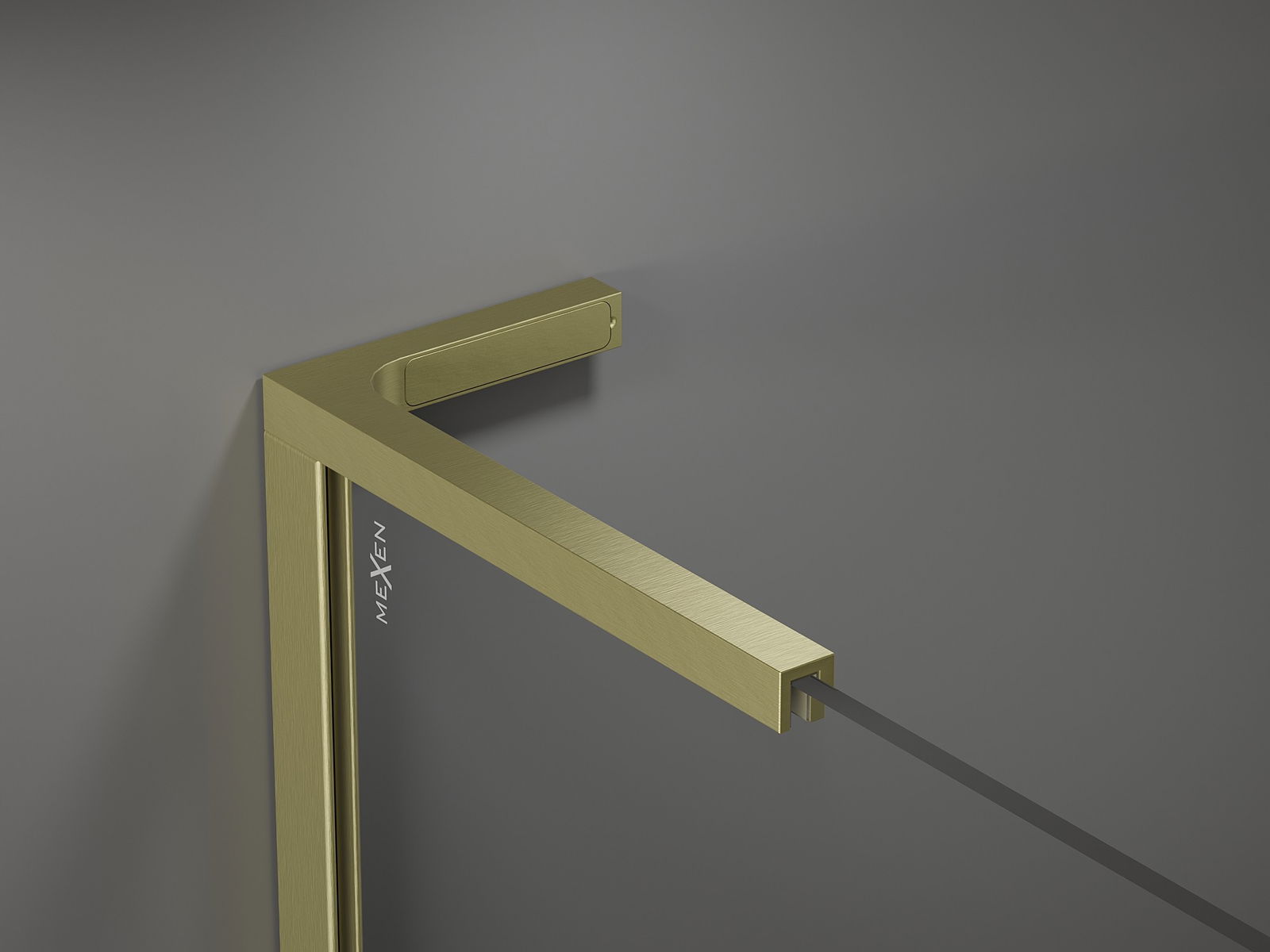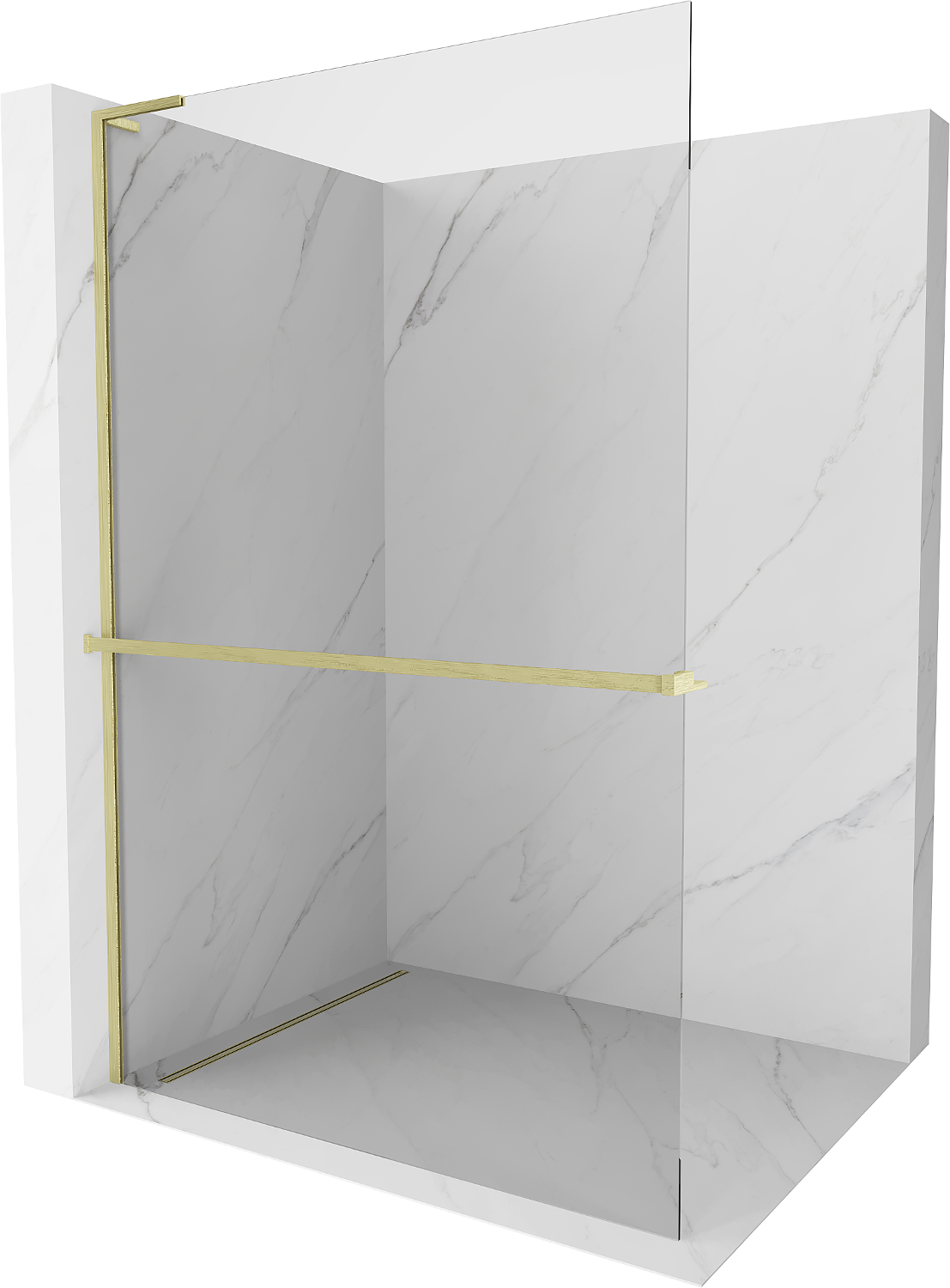 Mexen Kioto+ L suihkuseinä hyllyllä Walk-in 85 x 200 cm, läpinäkyvä, kultainen harjattu - 800-085-123-55-00