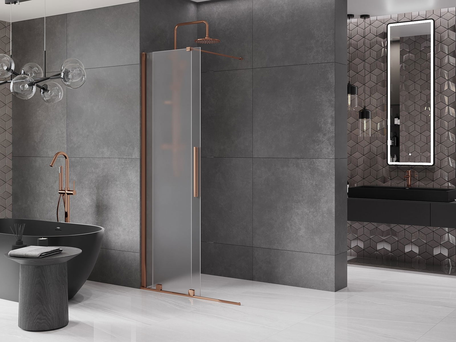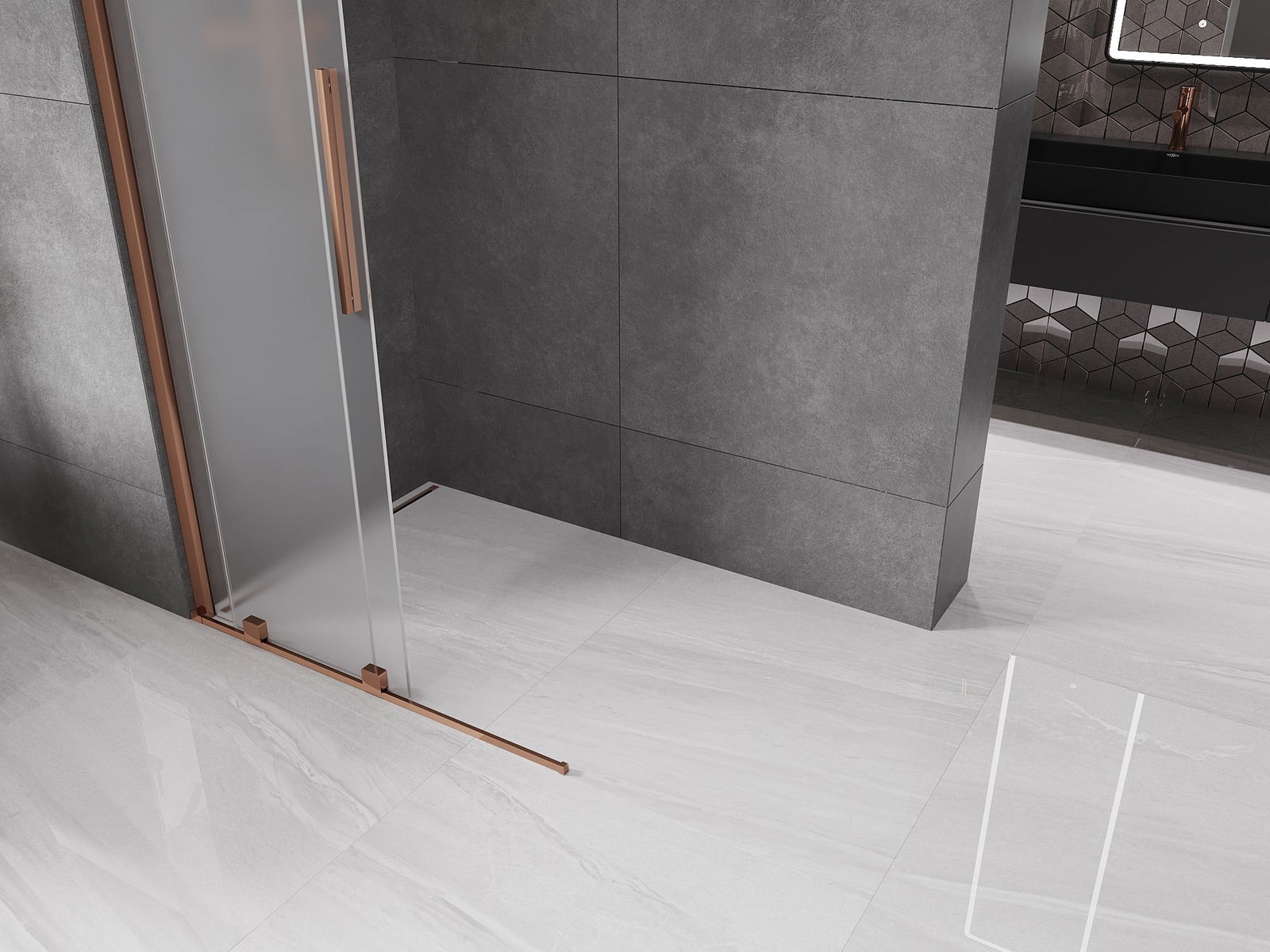 Mexen Velar liukuva suihkuseinä Walk-in 75 x 200 cm, huurrettu 8 mm, ruusukulta - 871-075-000-33-60