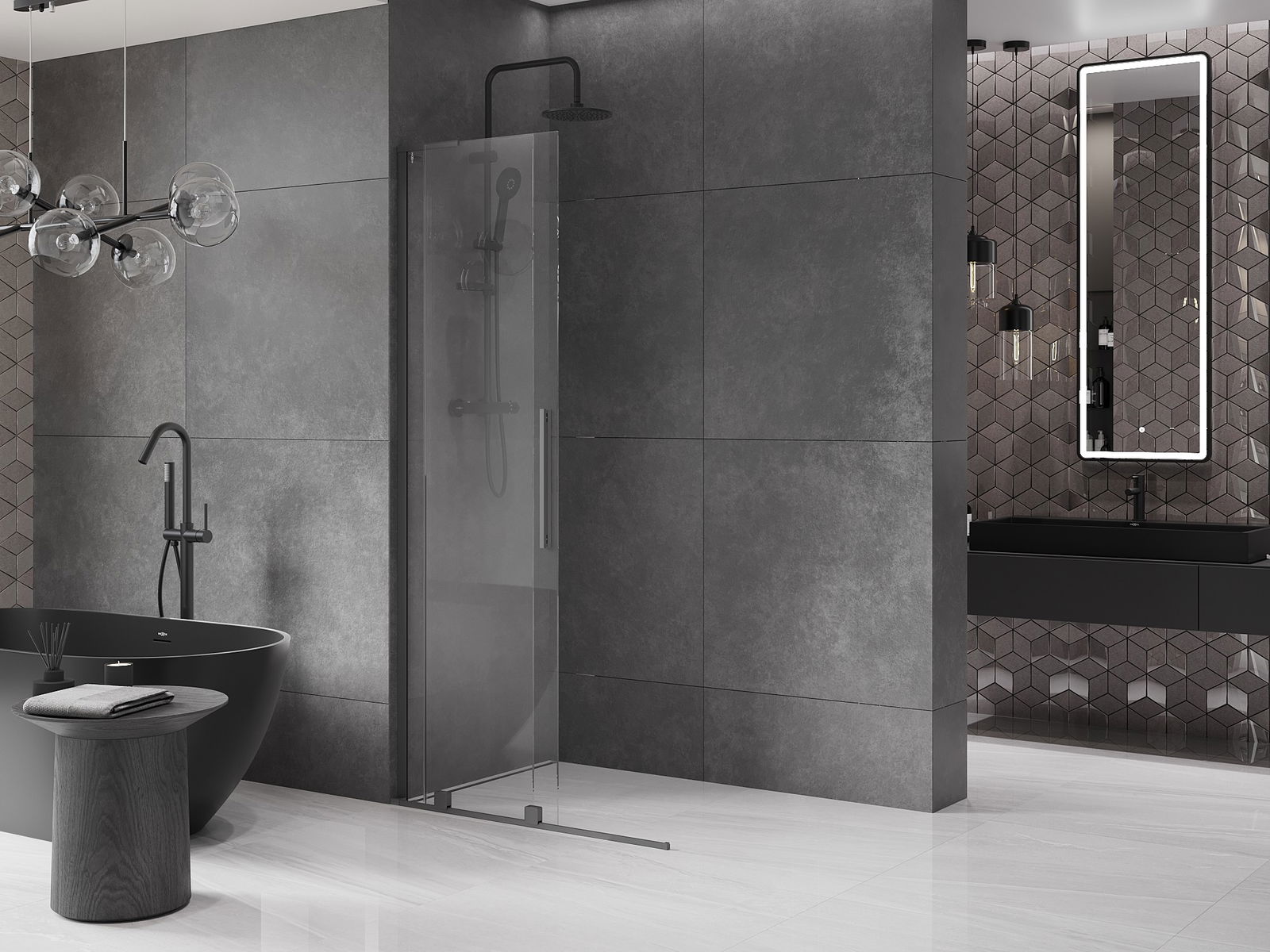 Mexen Velar L liukuva Walk-in-suihkuseinä 90 x 200 cm, läpinäkyvä 8 mm, gun metal - 871-090-003-03-95