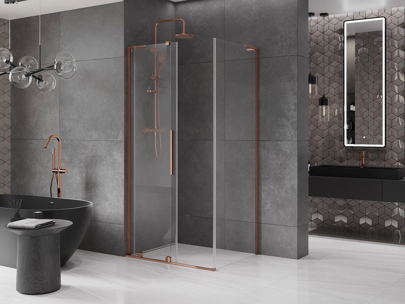 Mexen Velar L liukuovi suihkukaappi 90 x 110 cm, läpinäkyvä, ruusukulta - 871-090-110-03-60