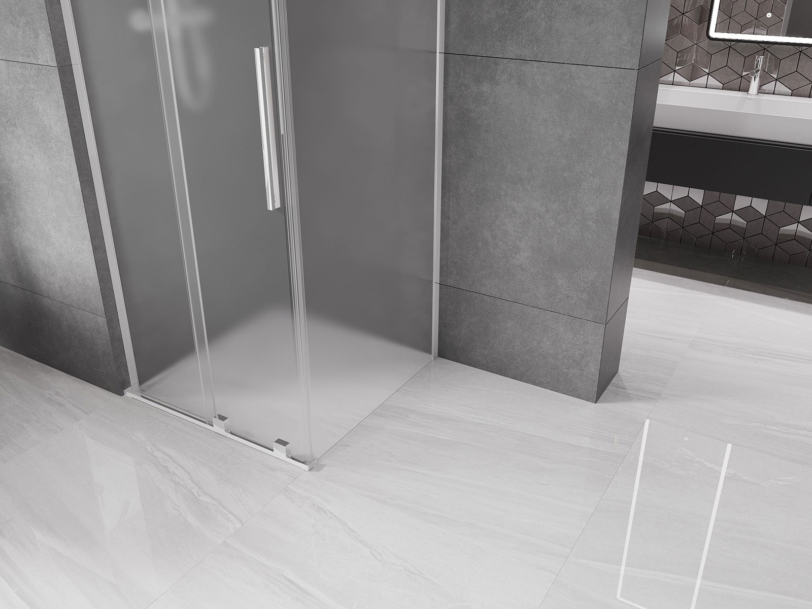 Mexen Velar L liukuovi suihkukaappi 110 x 110 cm, huurrettu, kromi - 871-110-110-33-01