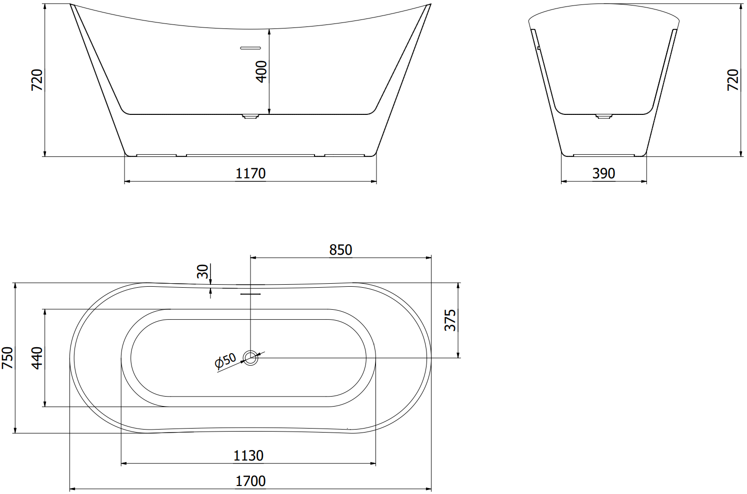 Koko: 170 x 75 cm