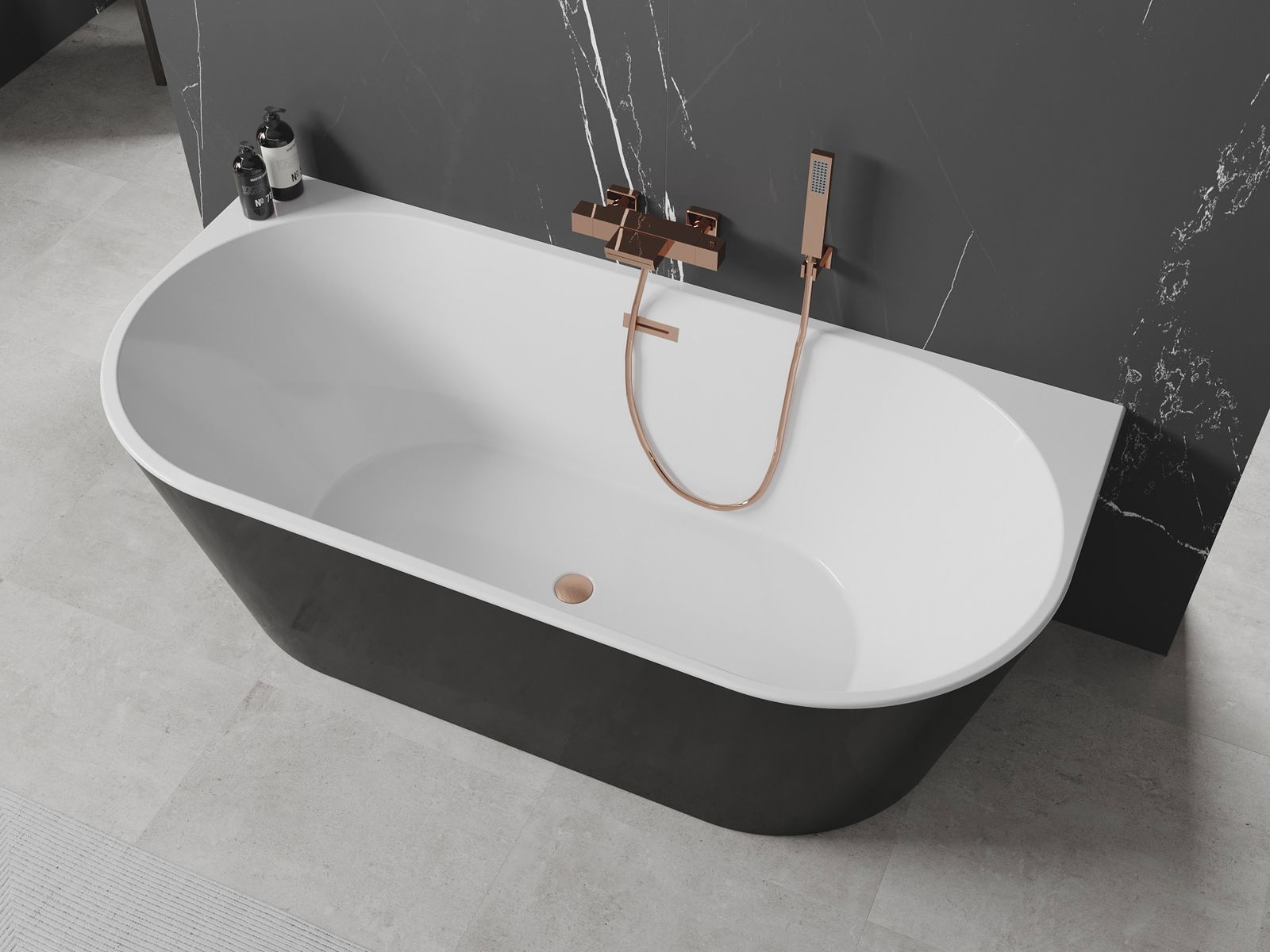 Mexen Oval vapaasti seisova seinään kiinnitettävä kylpyamme 170 x 80 cm, valkoinen/musta, harjattu kupariylivuoto