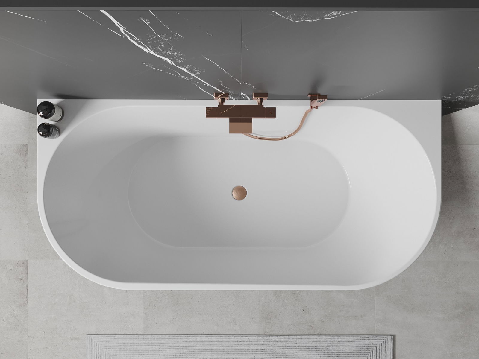 Koe ylellisyys Mexen Oval -kylpyammeella, jonka mitat ovat 180 x 80 cm ja joka yhdistää elegantisti valkoisen ja mustan värin moderniin harjatun kuparin viimeistelyyn. Sen ovaali muoto sekä 58 cm:n korkeus ja 45 cm:n syvyys takaavat mukavan kylpykokemuksen. Valmistettu saniteettiakryylistä, amme on kestävä himmenemistä ja UV-säteilyä vastaan, mikä takaa pitkäkestoisen kauneuden. Seinämäasennus helpottaa asennusta, ja paketti sisältää viemärin ja klik klak -propun.