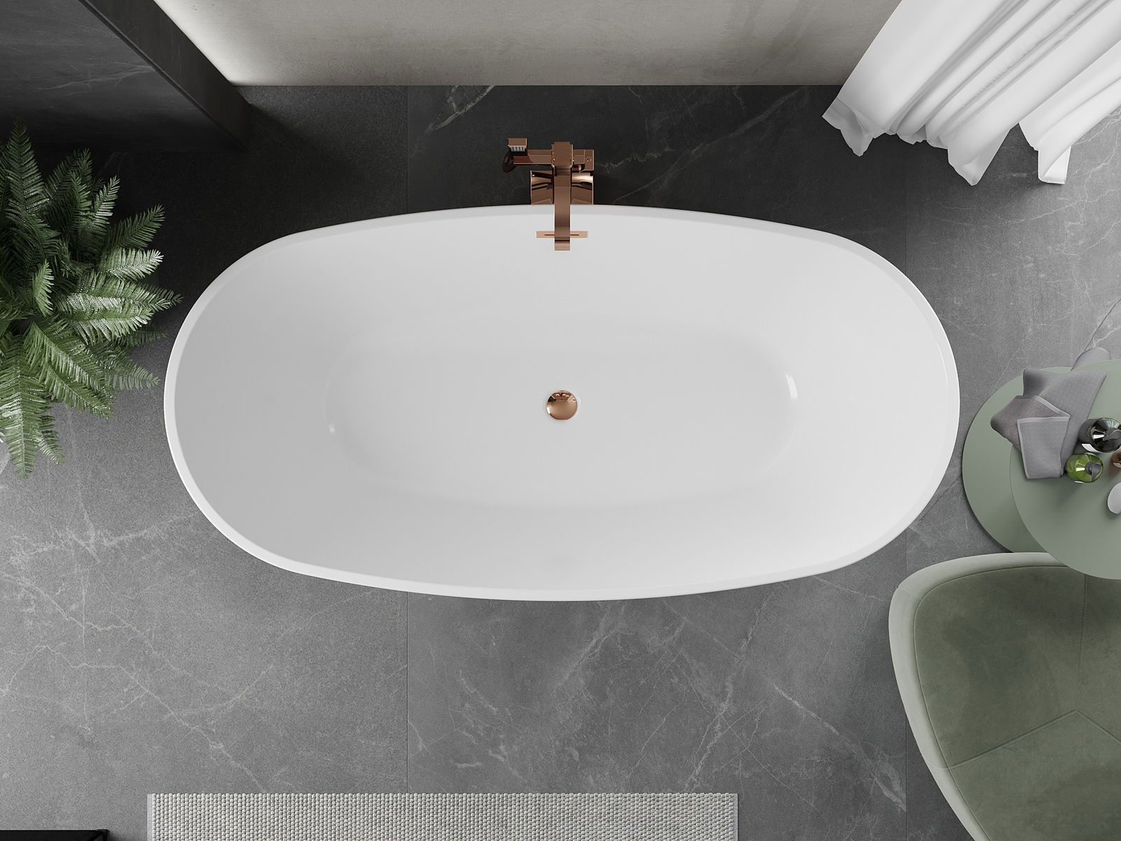 Mexen Eris vapaa seisova kylpyamme 170 x 80 cm, valkoinen, ylivuoto ruusukulta - 53441708000-60