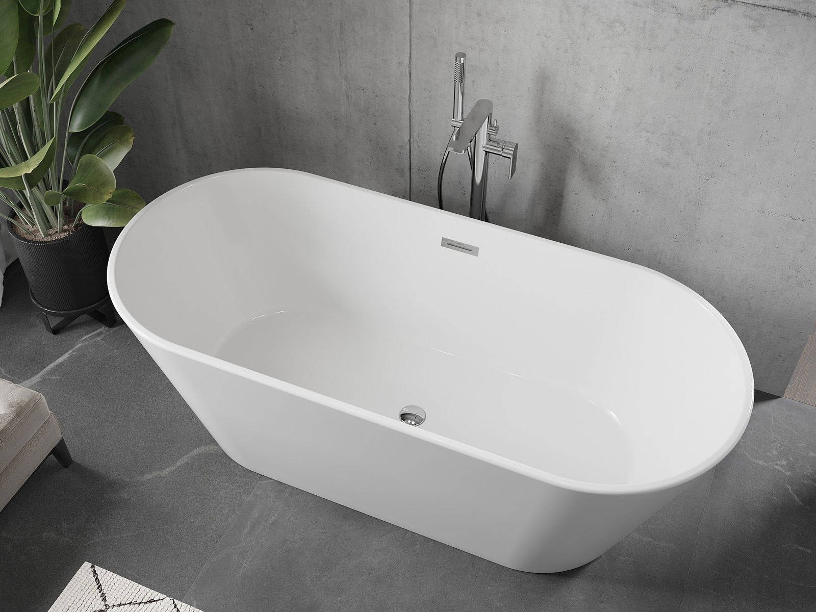 Itsenäisesti seisova kylpyamme tarjoaa tyylikkään, ovaalin muotoisen designin, joka sopii täydellisesti mihin tahansa kylpyhuoneeseen. Mitat 150 x 75 cm ja korkeus 58 cm takaavat käyttömukavuuden. Valmistettu saniteettiakryylistä, se kestää himmenemistä ja UV-säteitä. Kromattu viimeistely ja ylivuotoaukko lisäävät tuotteen toiminnallisuutta, ja mukana on viemäröintiputki sekä klick-klack-tyyppinen tulppa. Näiden ominaisuuksien ansiosta amme yhdistää estetiikan ja käytännöllisyyden.