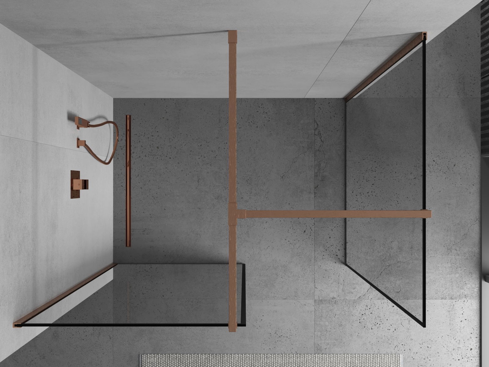 Mexen Kioto suihkuseinä Walk-in 140 x 100 cm, musta kehys, harjattu kupari - 800-140-202-65-70-100