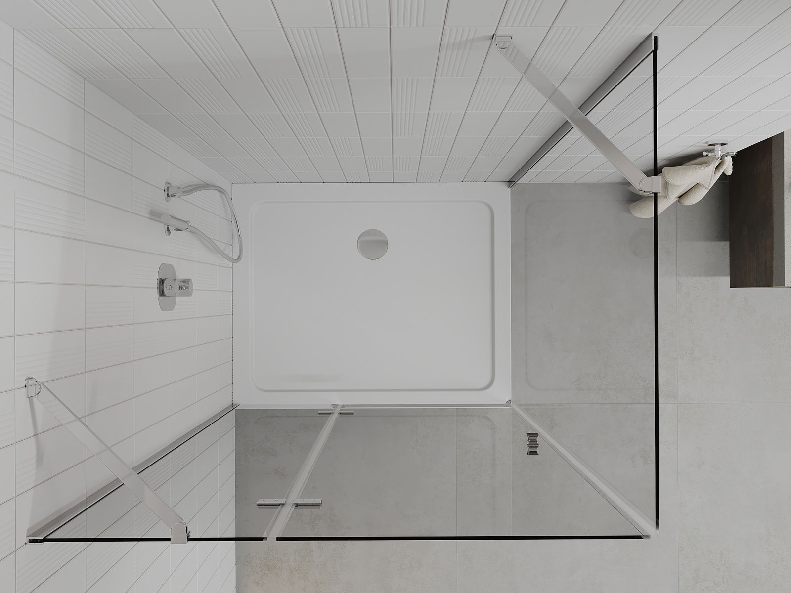 Mexen Roma Keinuva suihkukoppi 100 x 90 cm, läpinäkyvä, kromi + Flat-suihkualustasarja - 854-100-090-01-00-4010