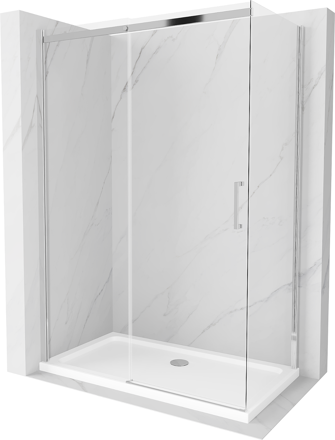 Mexen Omega liukuoven suihkukoppi 140 x 80 cm, läpinäkyvä, kromi + Flat-suihkualusta - 825-140-080-01-00-4010