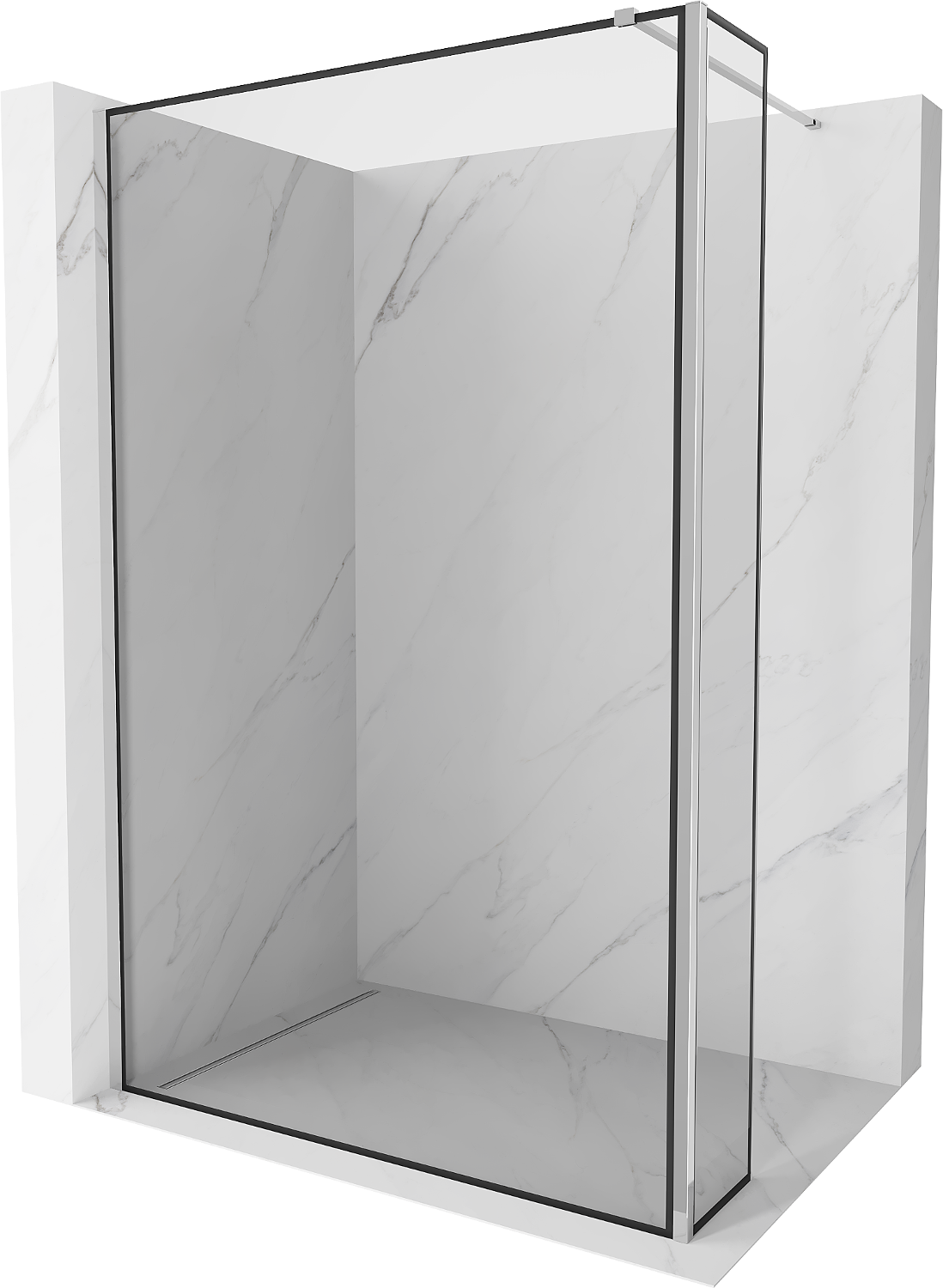 Mexen Kioto suihkuseinä Walk-in 100 x 40 cm, musta kehys, kromi - 800-100-212-01-70-040